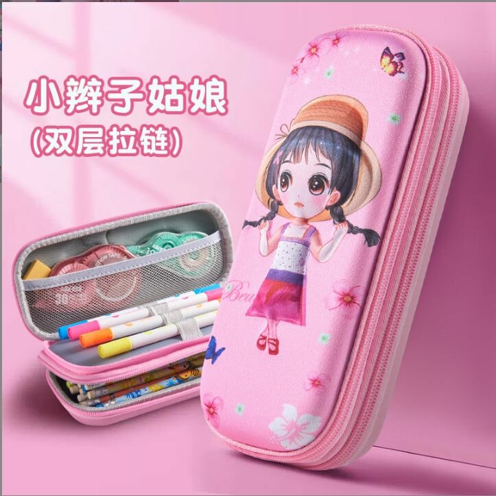 3D жесткий двойной пенал на молнии для мальчиков и девочек, 3 отделения с держателем (мод.03.73)