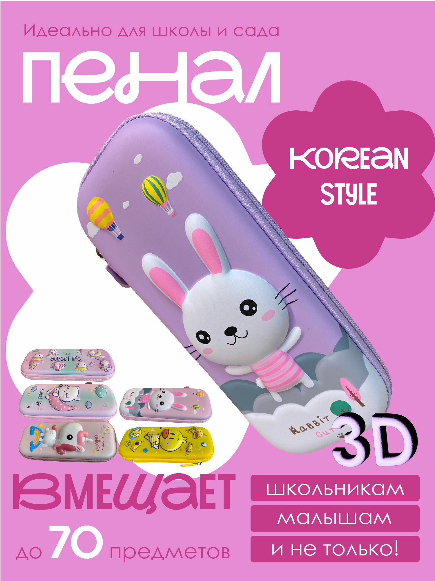 Купить Вместительный 3D жесткий пенал на молнии, 2 отделения с держателем (мод.03.42)
