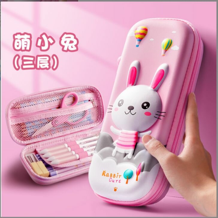 3D жесткий двойной пенал на молнии для мальчиков и девочек, 3 отделения с держателем (мод.03.73)