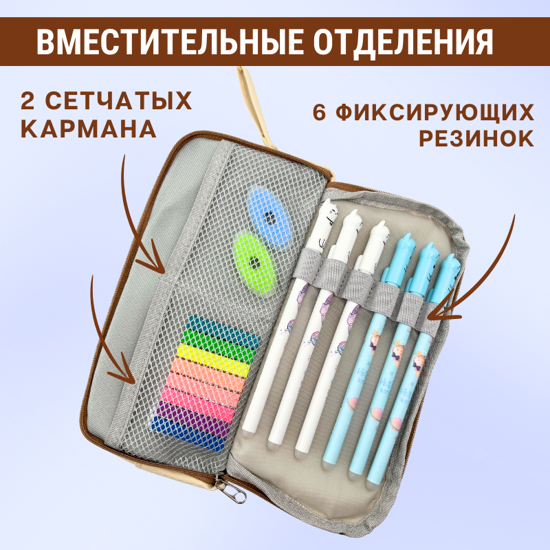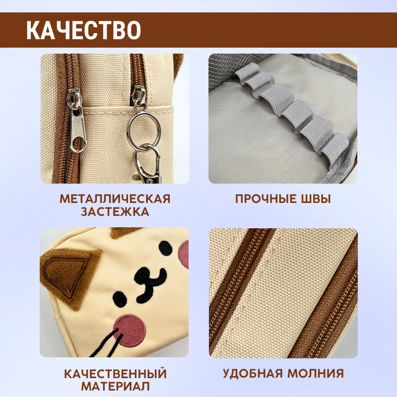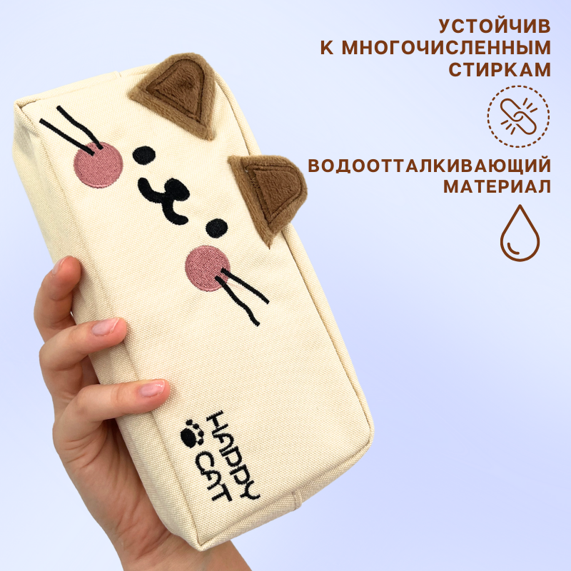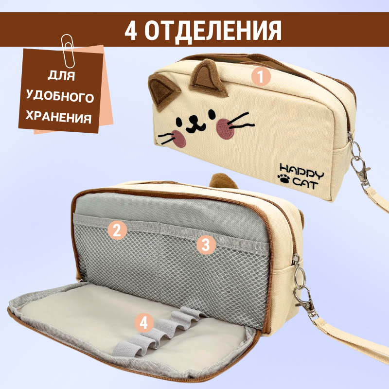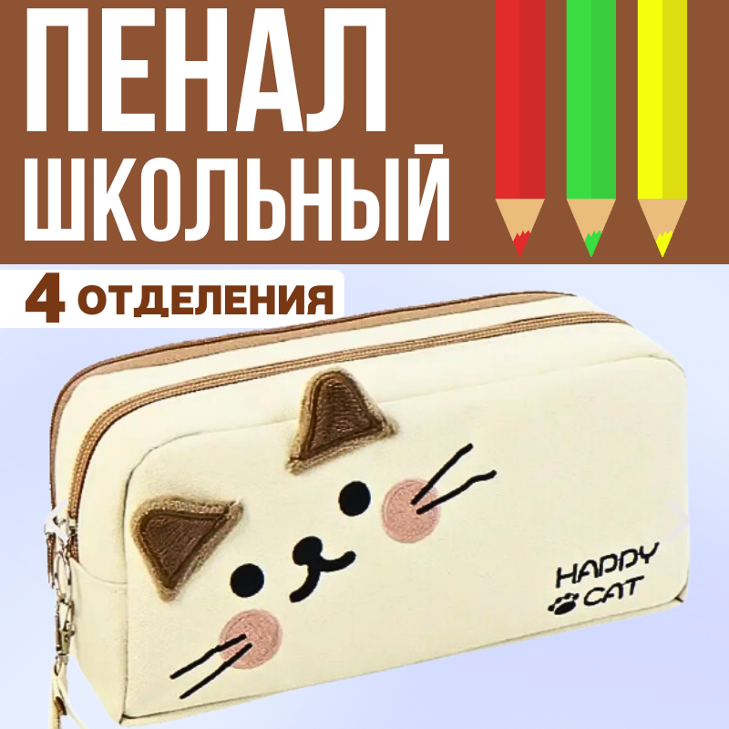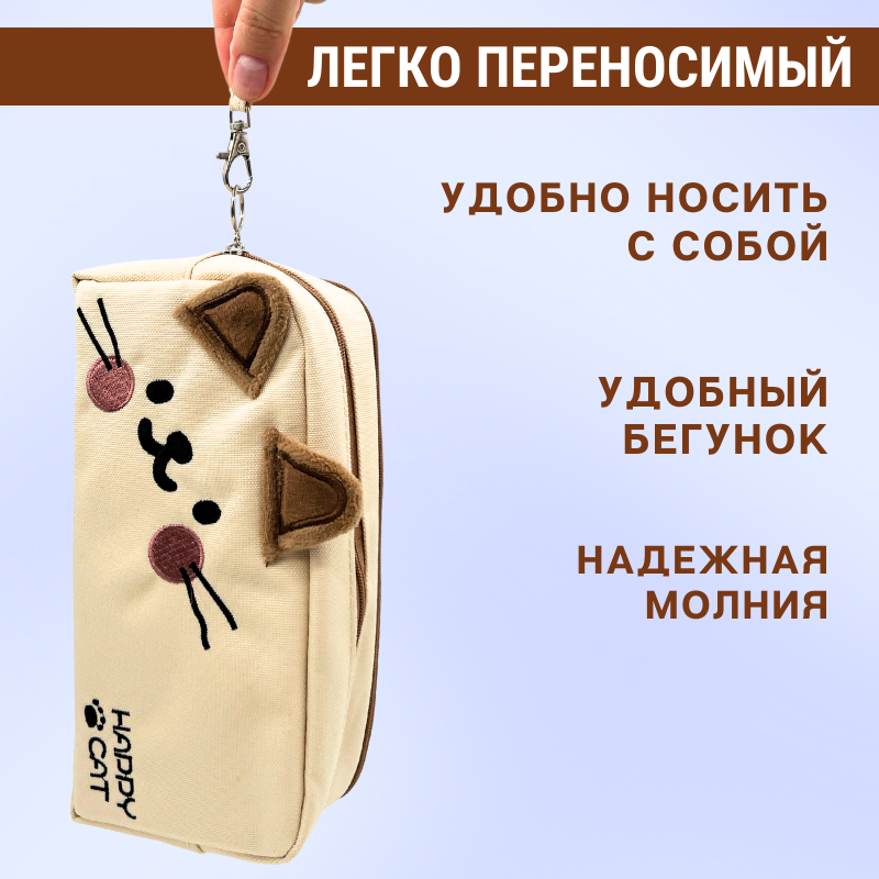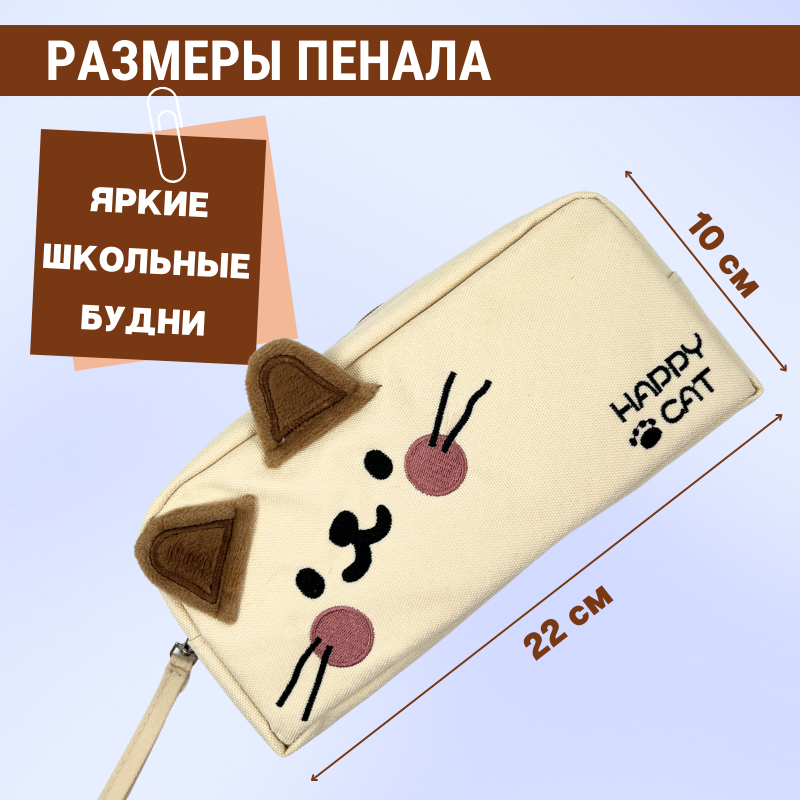 Пенал школьный для девочек и мальчиков, котик бежевый интересное: