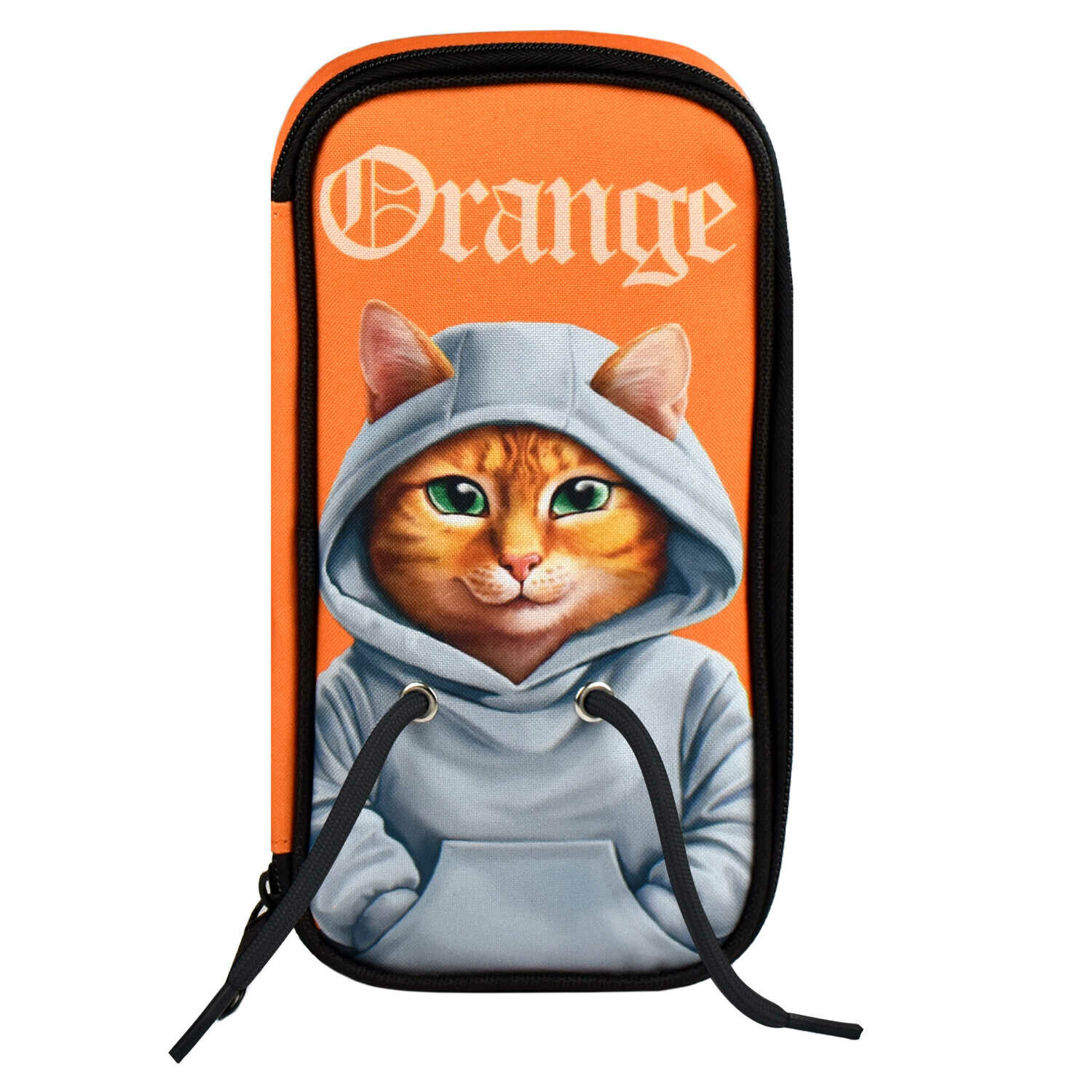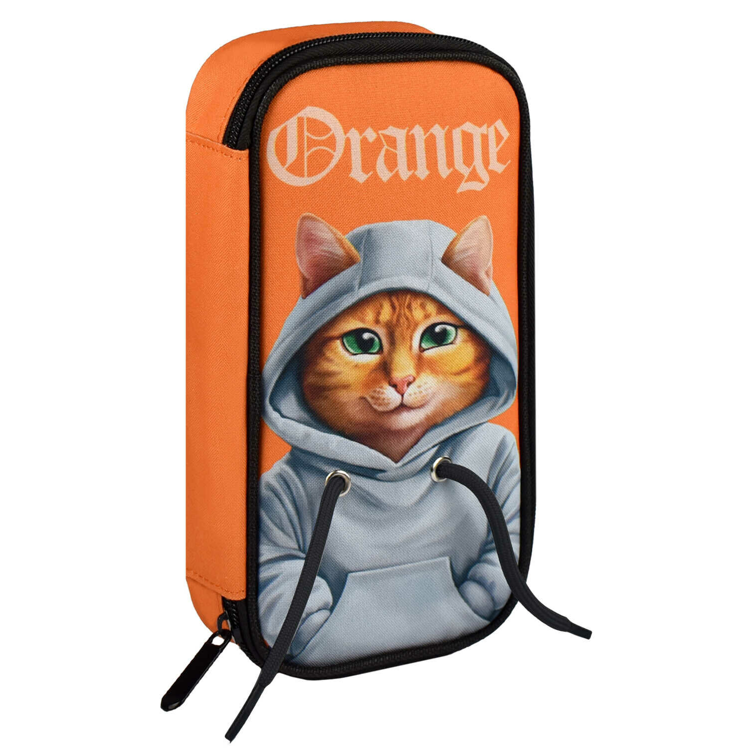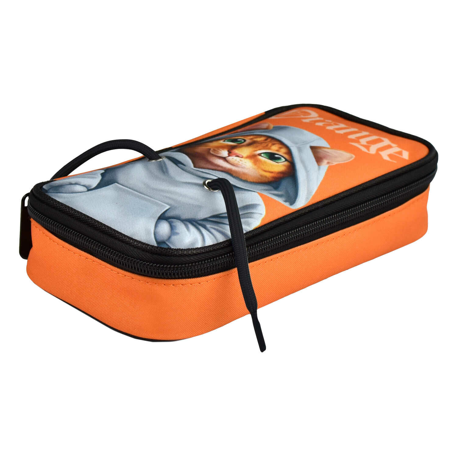 Купить Пенал Феникс+ "Кот", на молнии, полиэстер, оранжевый, серый, чёрный, 20x10x4.5 см