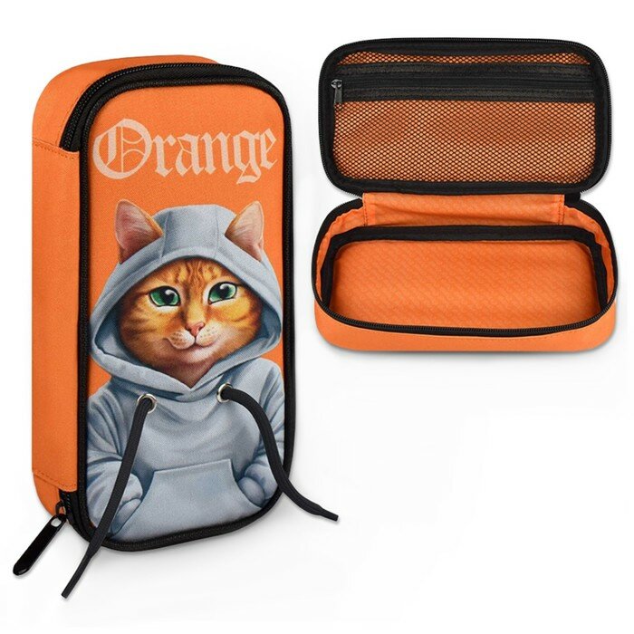 Пенал Феникс+ "Кот", на молнии, полиэстер, оранжевый, серый, чёрный, 20x10x4.5 см интересное: