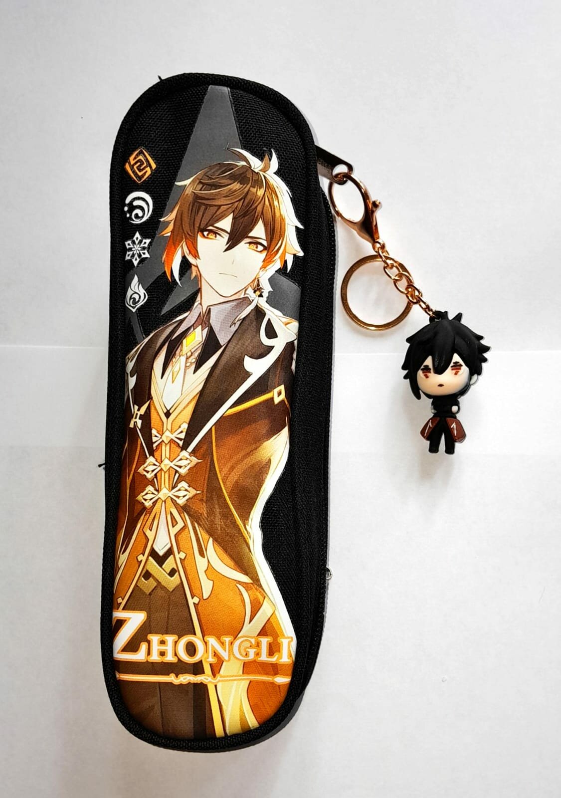 Пенал Геншин Импакт и брелок в подарок с рисунком Genshin Impact, Zhongli, Чжун Ли интересное: