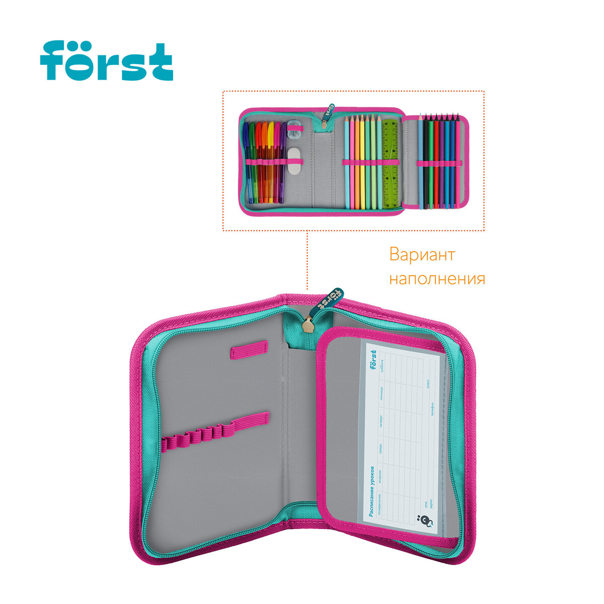 Пенал 1 отделение, 200*140*40 Först "Fancy", дополнительная откидная секция, полиэстер