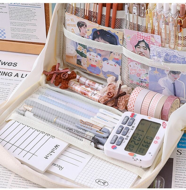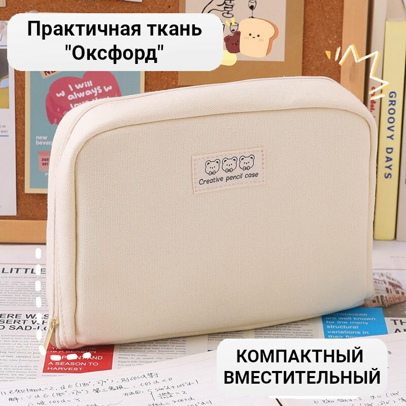 Вместительный школьный пенал молочный(без наполнения) интересное: