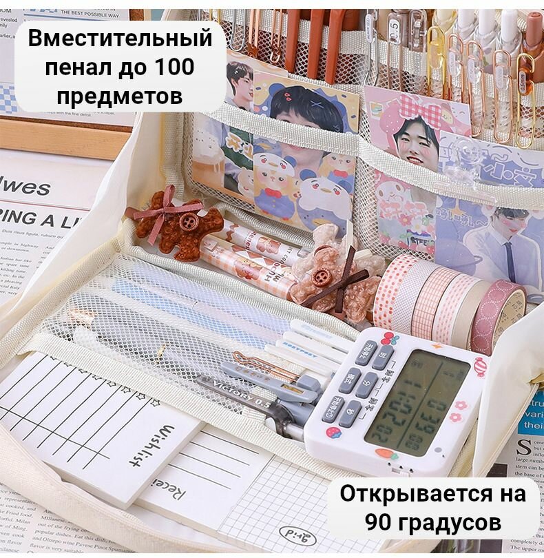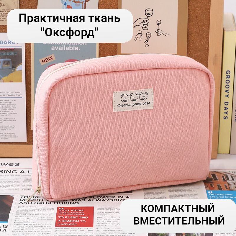 Вместительный школьный пенал розовый(без наполнения) интересное: