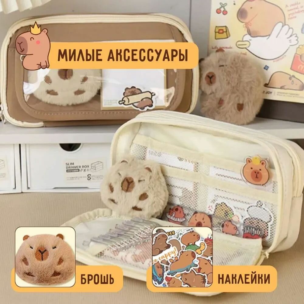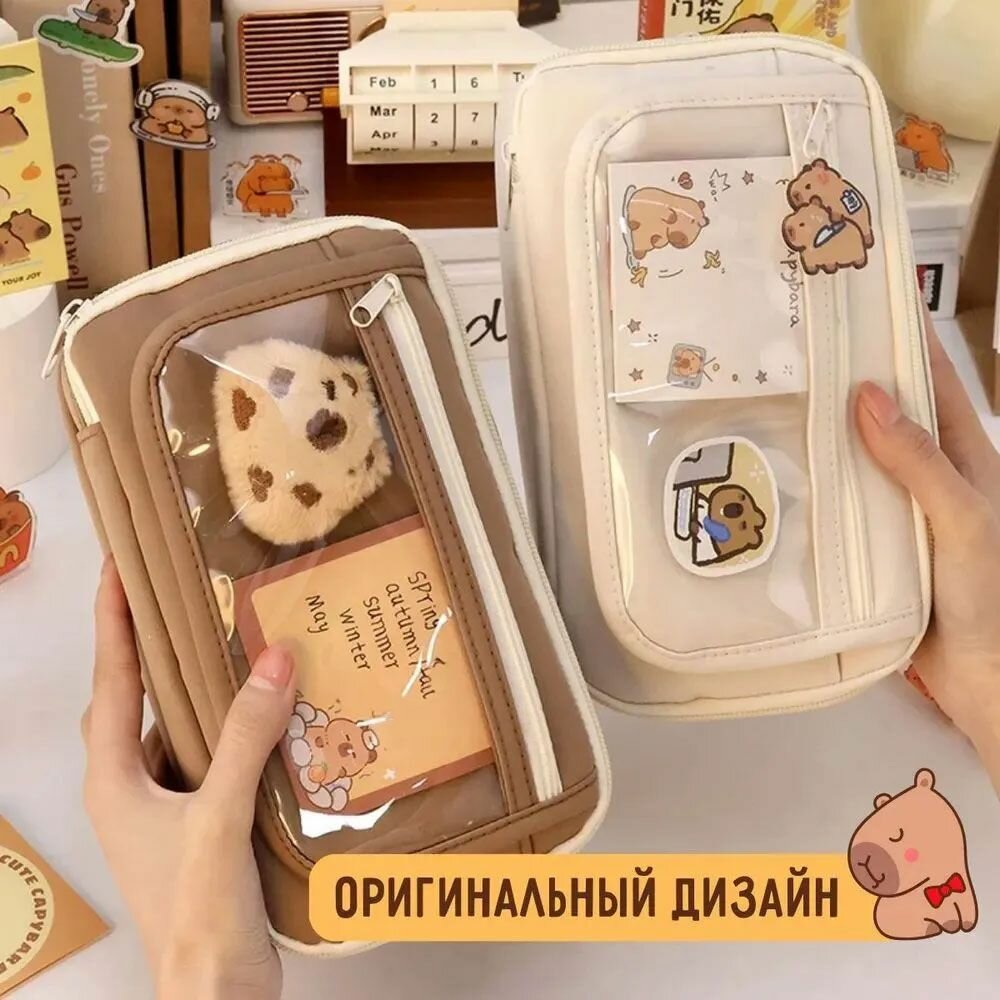 Школьный пенал с капибарой, органайзер для канцелярии детский, оригинальный подарок интересное: