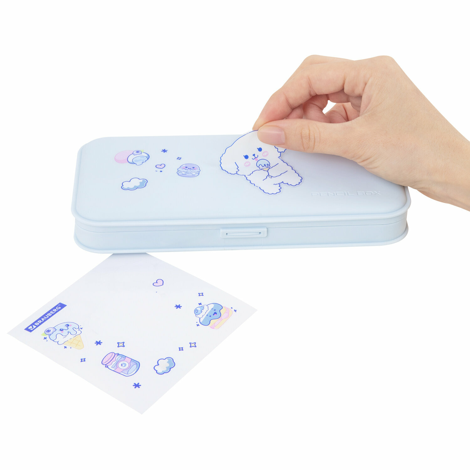 Купить Пенал пластиковый Brauberg, пастельный голубой, наклейки в комплекте, 21х9х3 см, 272272