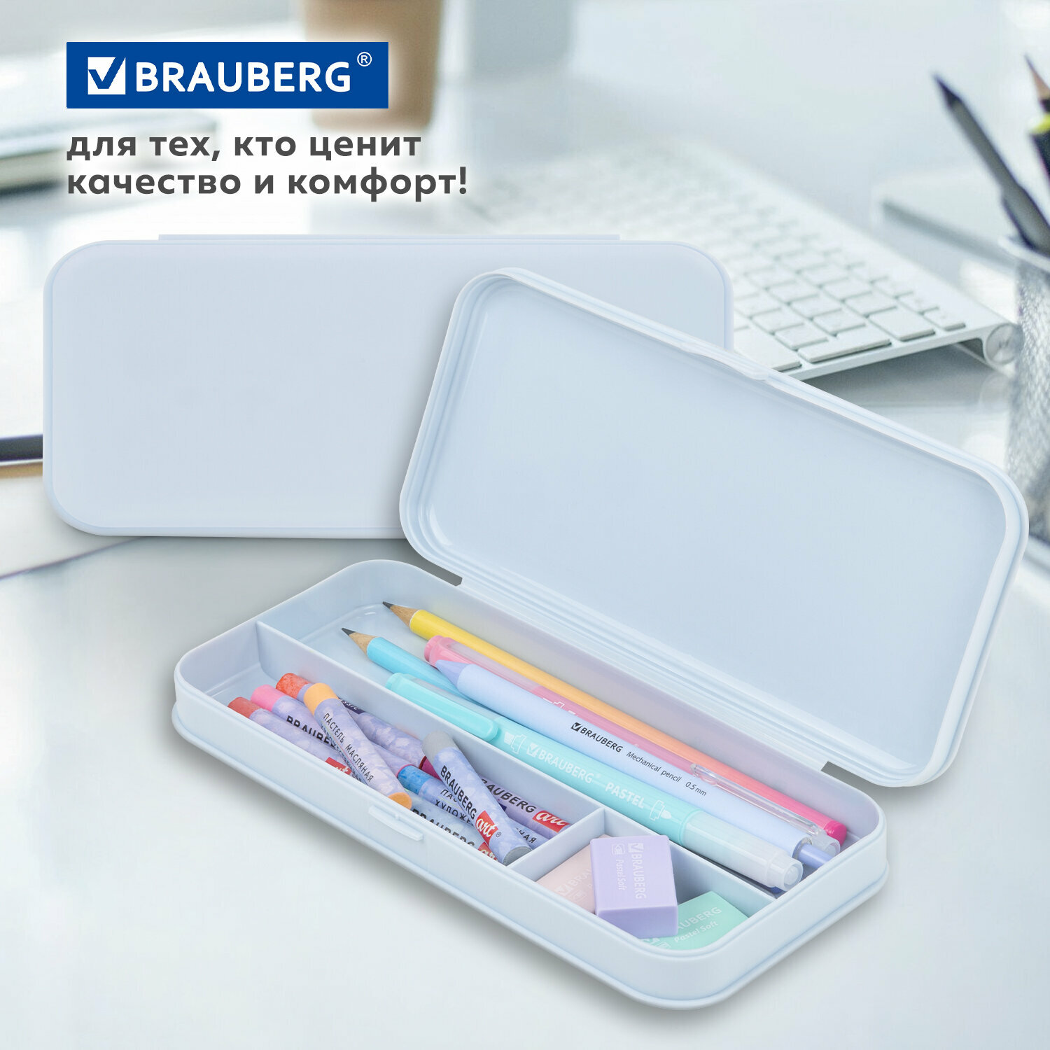 Пенал пластиковый Brauberg, пастельный голубой, наклейки в комплекте, 21х9х3 см, 272272 интересное: