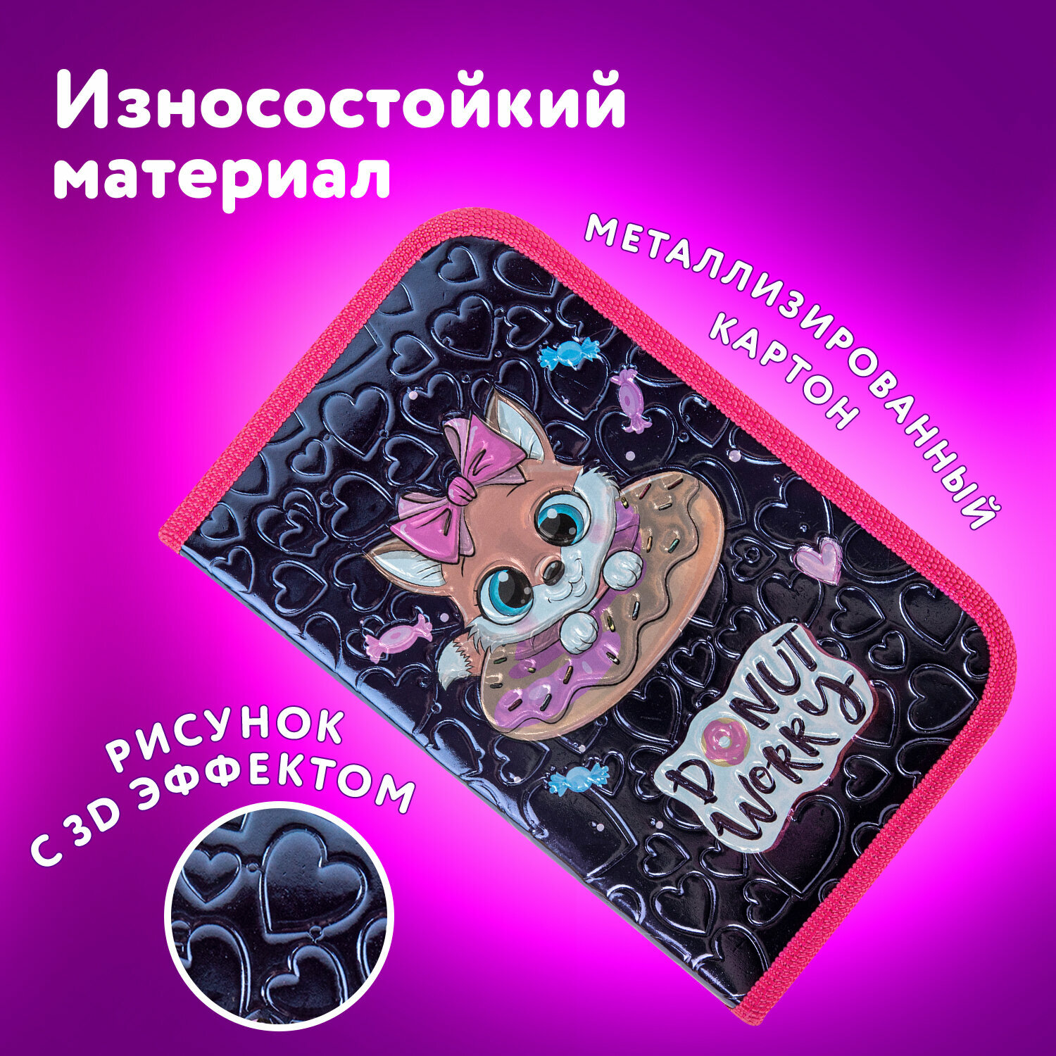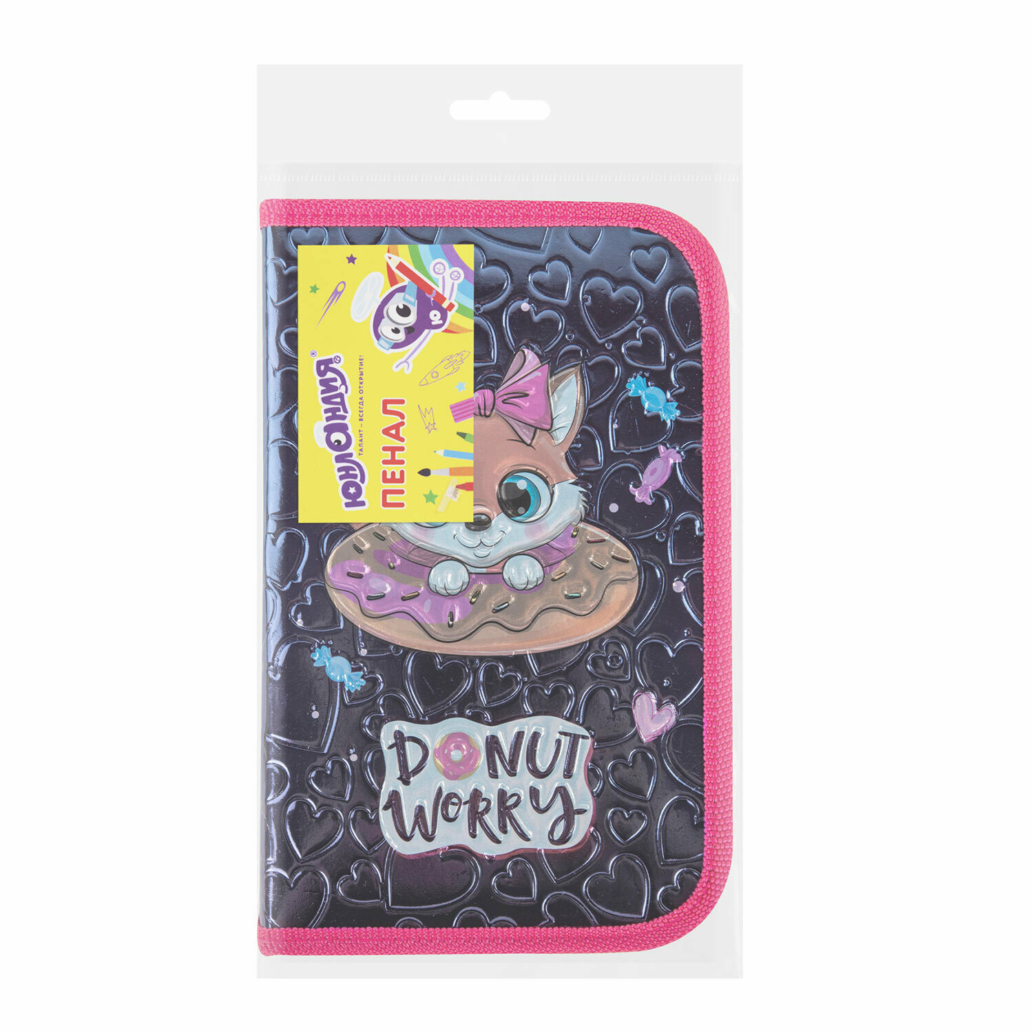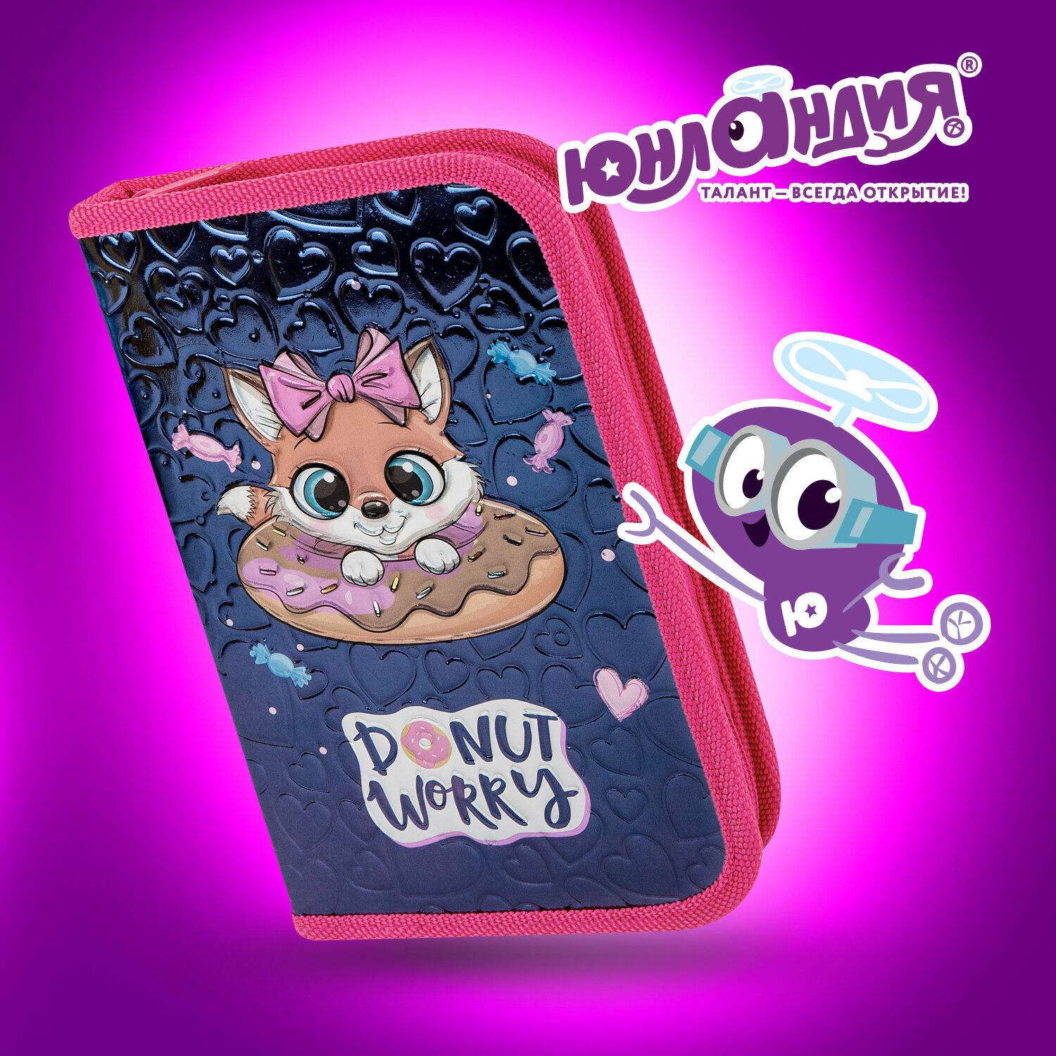 Пенал Юнландия, 1 отделение, металлизированный картон, конгрев, 19х11 см, Donut worry, 272281 интересное: