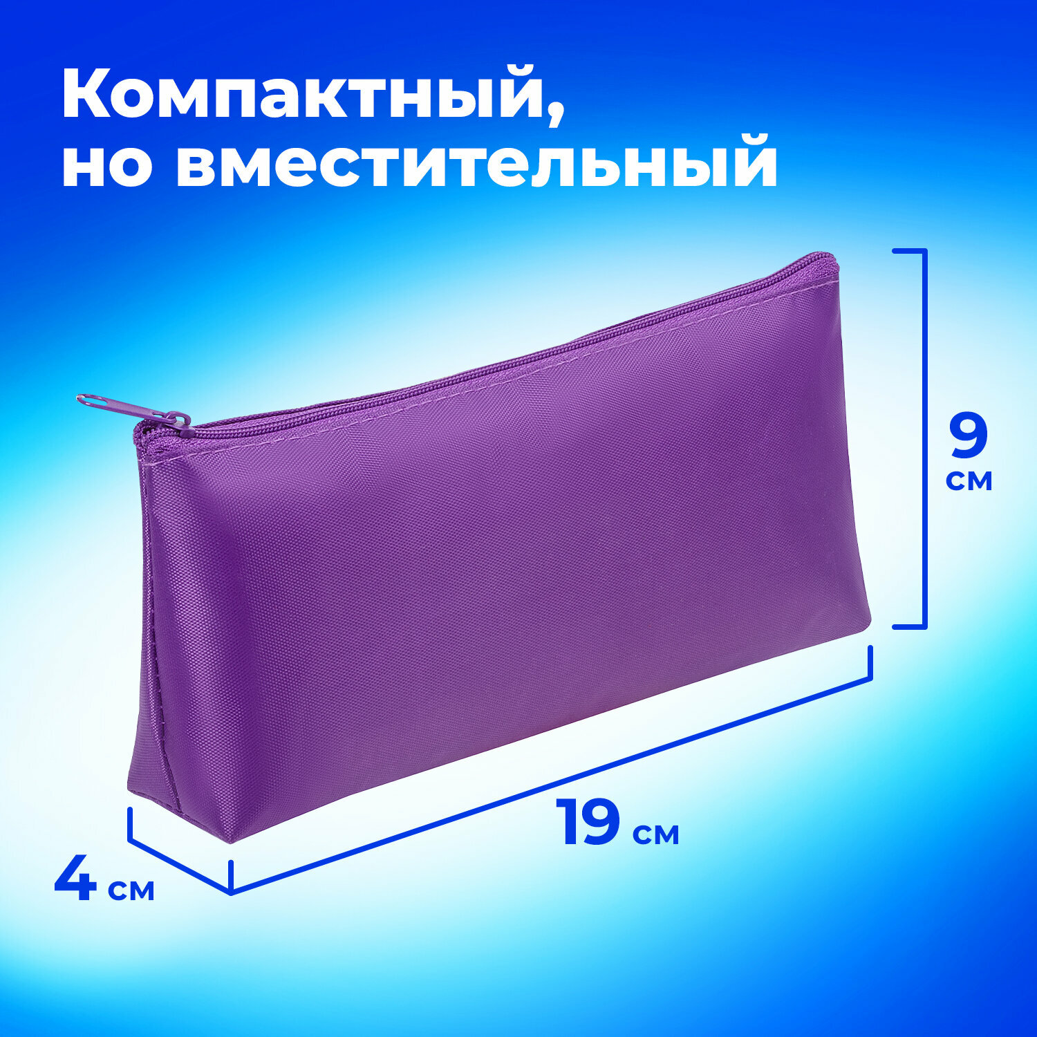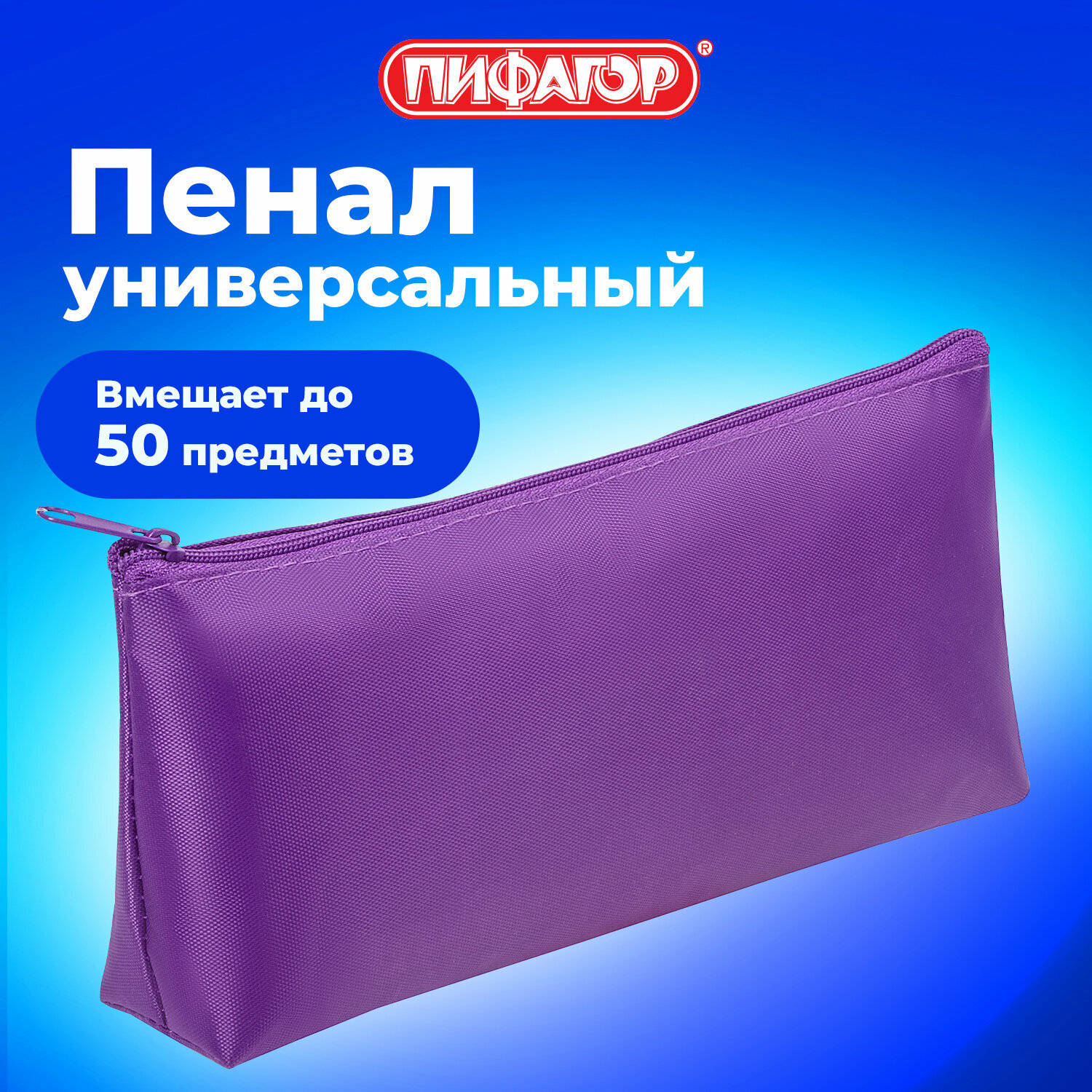 Пенал-косметичка пифагор на молнии, текстиль, фиолетовый, 19х4х9 см, 229003 интересное: