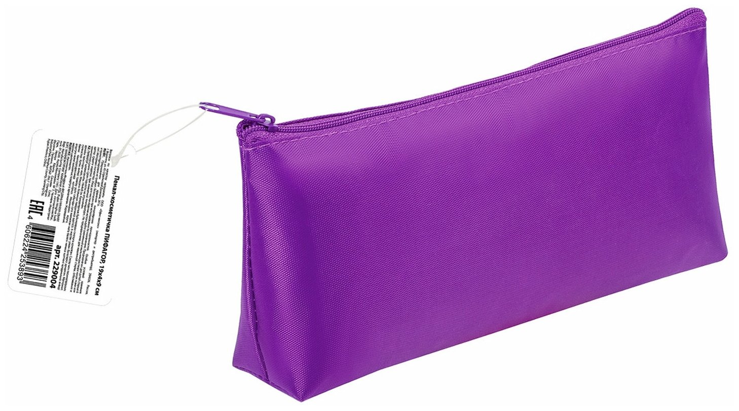 Купить Пенал-косметичка пифагор на молнии, текстиль, фиолетовый, 19х4х9 см, 229003