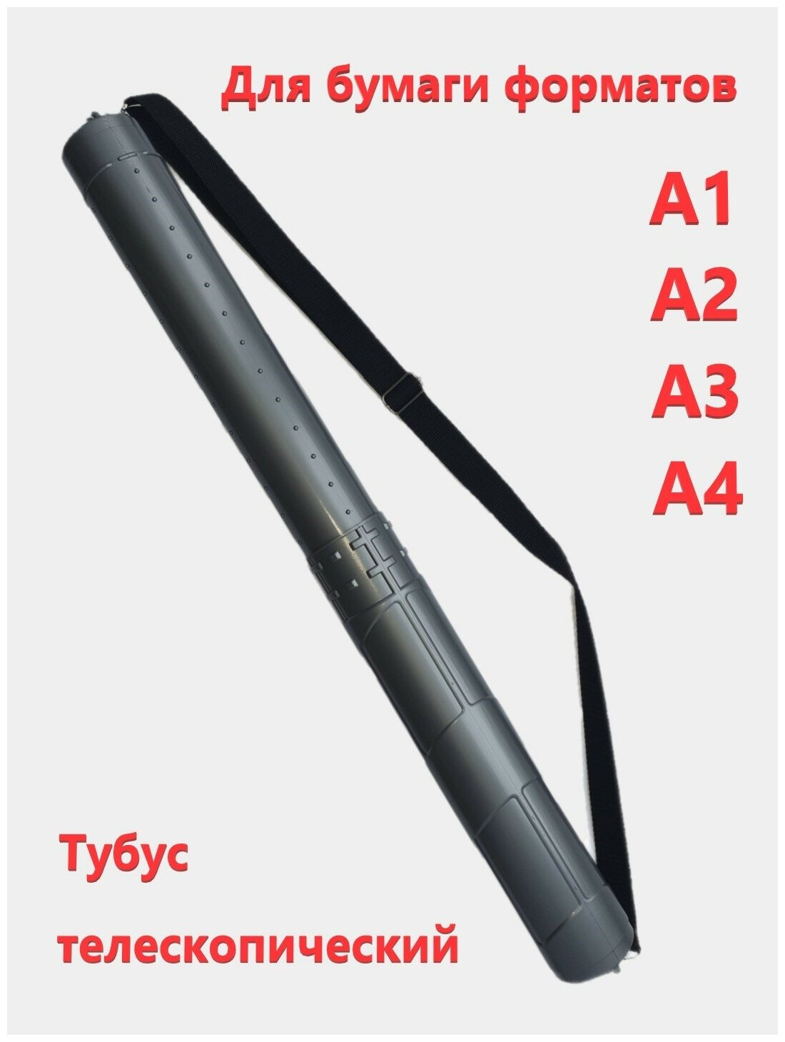 Купить Тубус на ремне телескопический длина от 36 до 64см, диаметр 6см для чертежей и рисунков