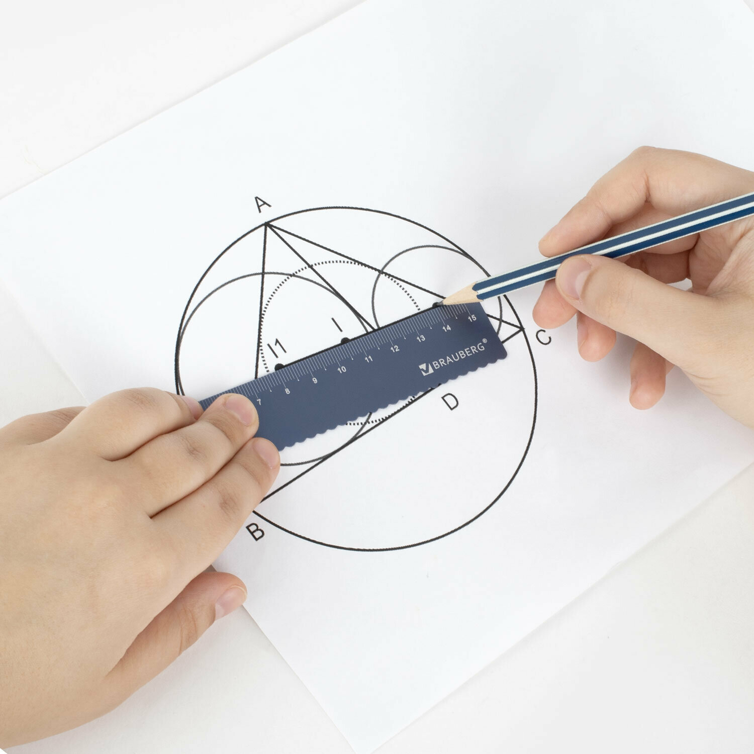 Набор чертежный для школы, геометрии и черчения металлический, линейка 15 см, 2 треугольника и транспортир, пенал, Brauberg, 210816 интересное: