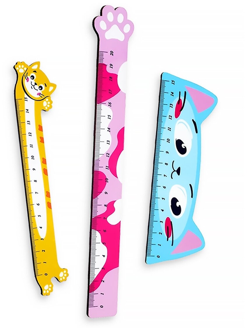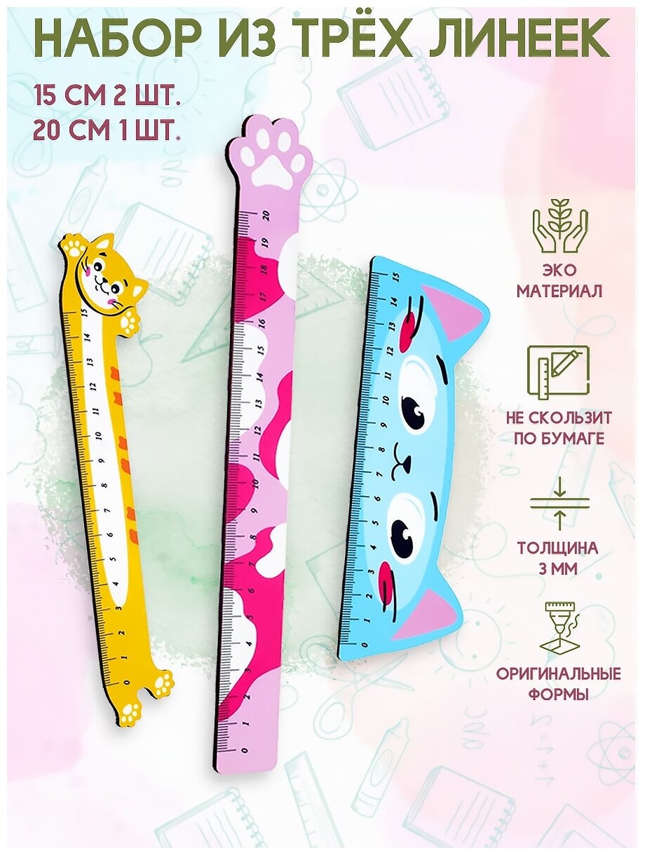 Купить Набор деревянных линеек 3 шт. "Розовая лапка" / линейка с котом