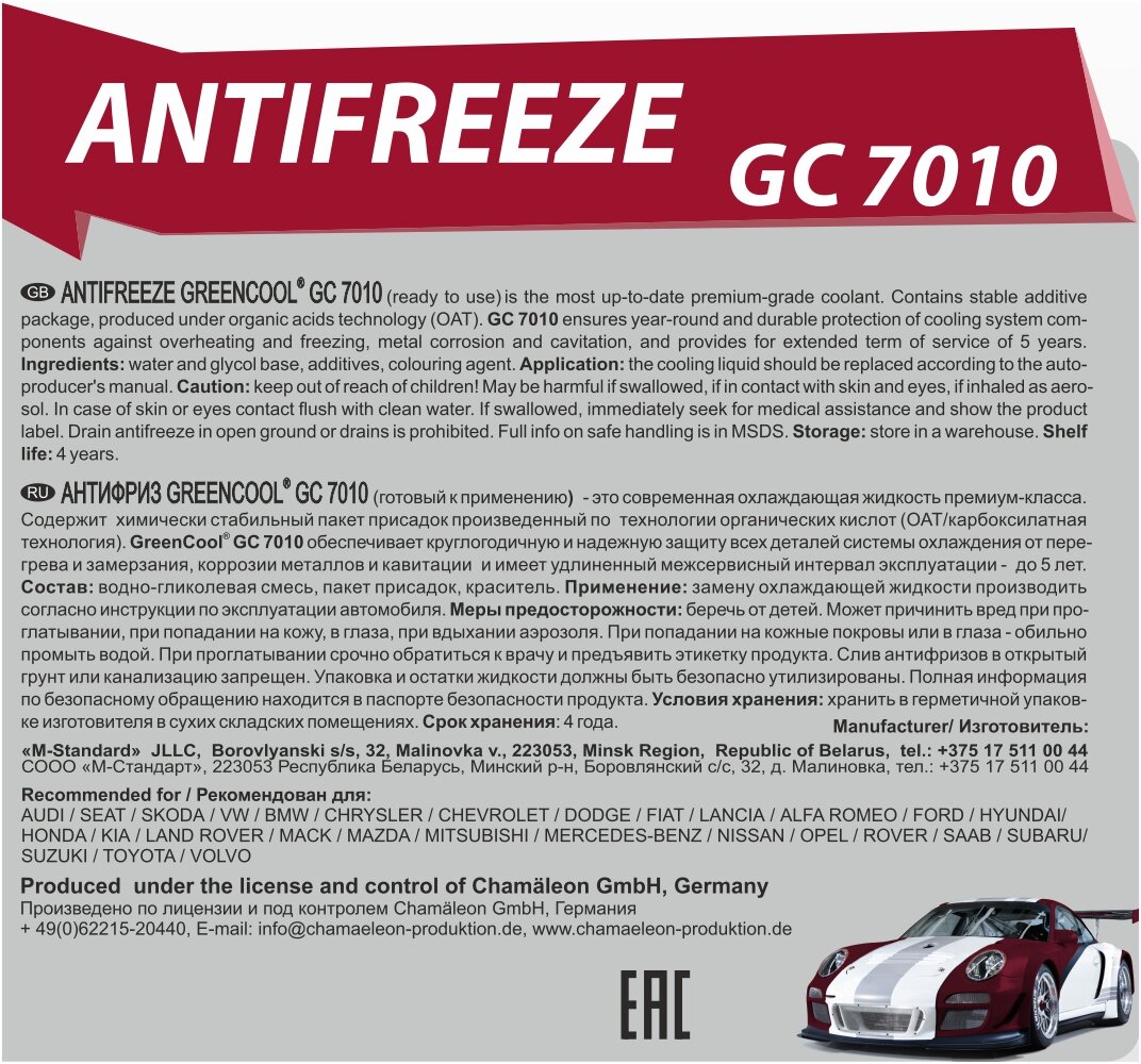 СохранитьАнтифриз G-12+ Greencool Gс7010 Готовый (Красный) 1кг GreenCool арт. 792248 интересное: