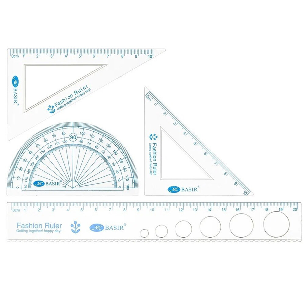 Набор MC-Basir "Геометрия", 4 гибкие линейки, пластик, розовый