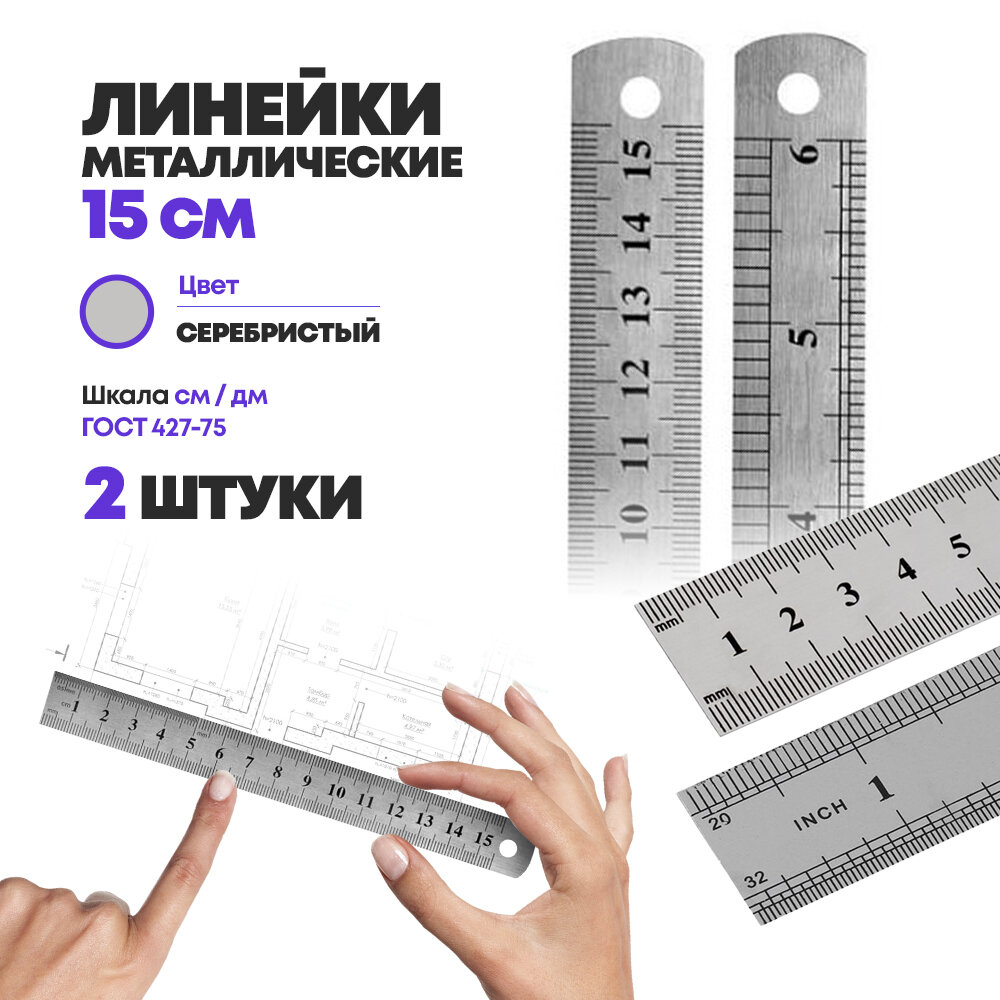 СохранитьНабор измерительных линеек MC-Basir, металл, 15см, 2шт, серый металлик интересное:
