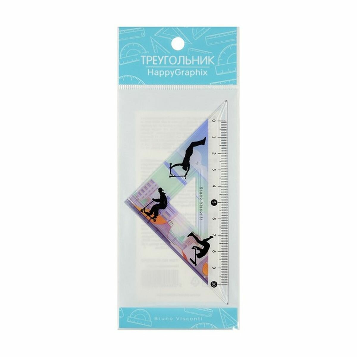 Купить Треугольник пластиковый "HappyGraphix. Самокаты", 45 градусов, шкала по двум катетам