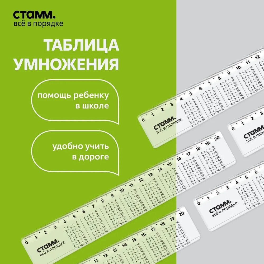 Купить Набор линеек 20см СТАММ "Таблица умножения" 2шт, пластиковые, прозрачные, бесцветные, флоупак