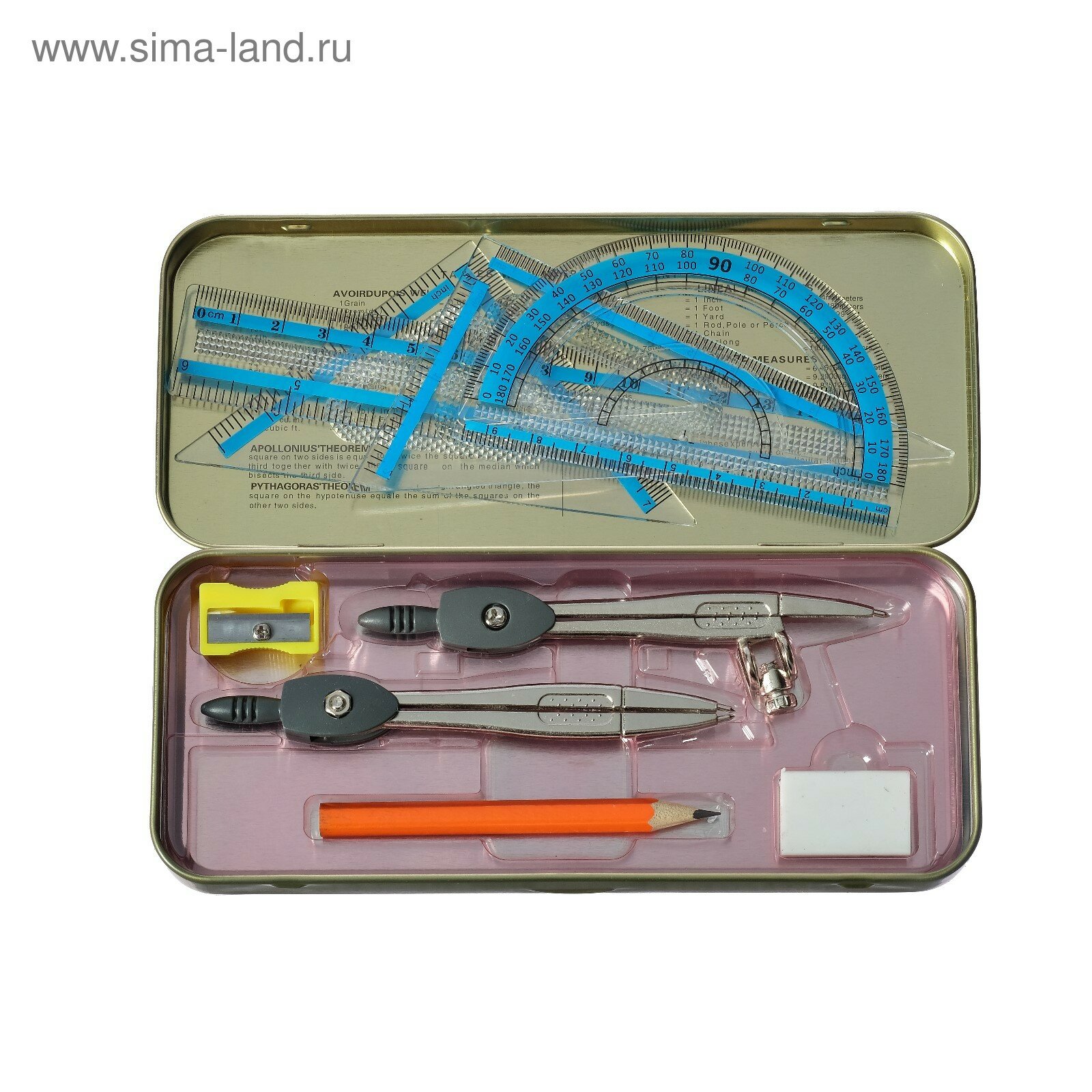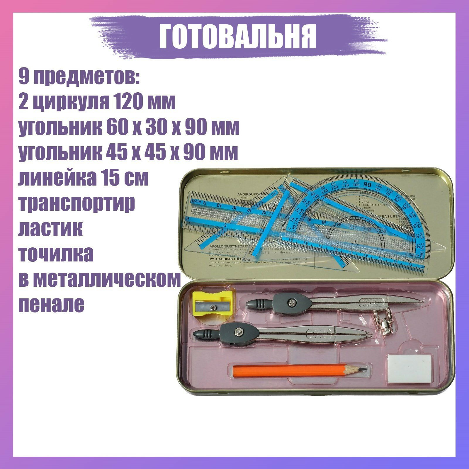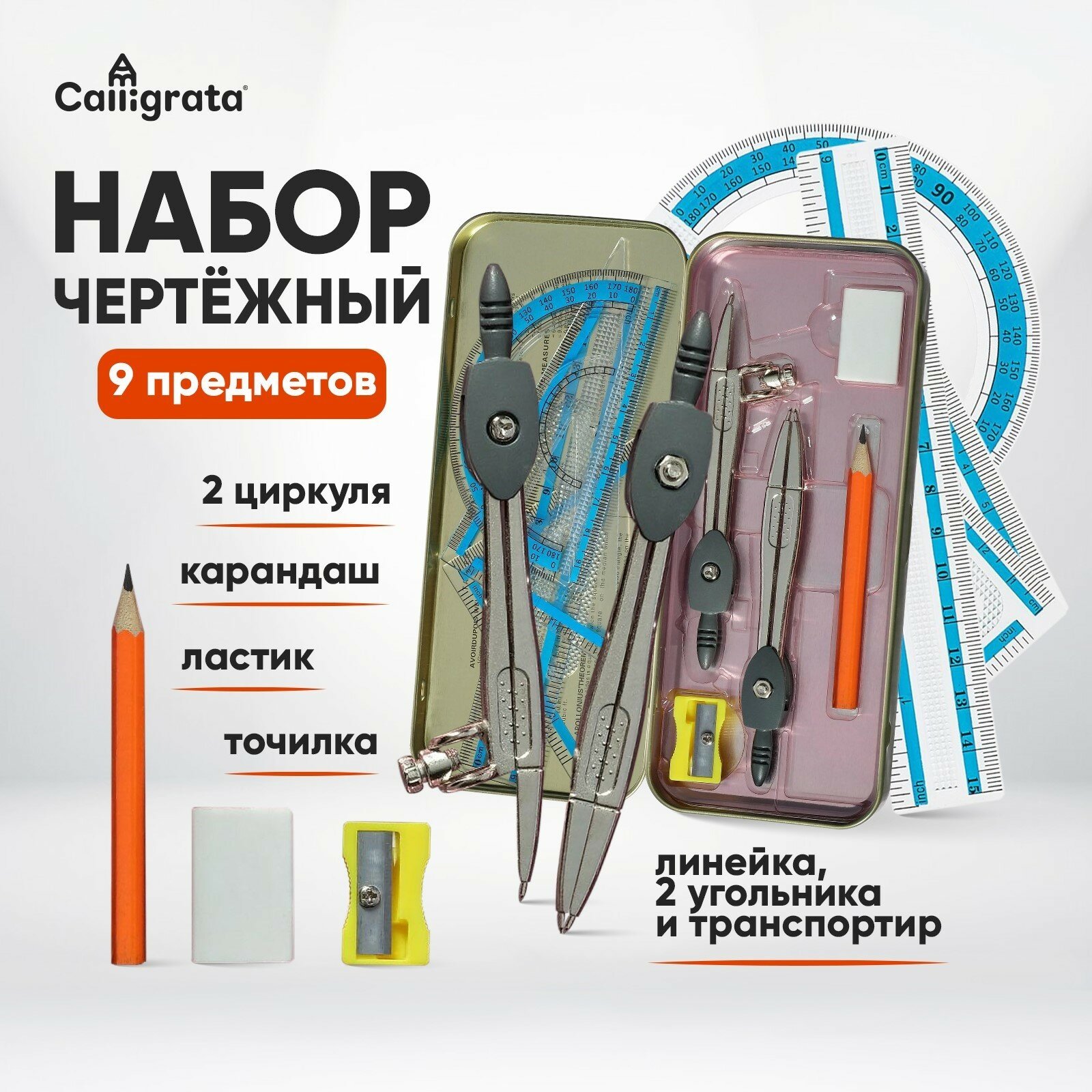 Купить Готовальня циркуль Calligrata, 9 предметов в пенале, металл/пластик/дерево