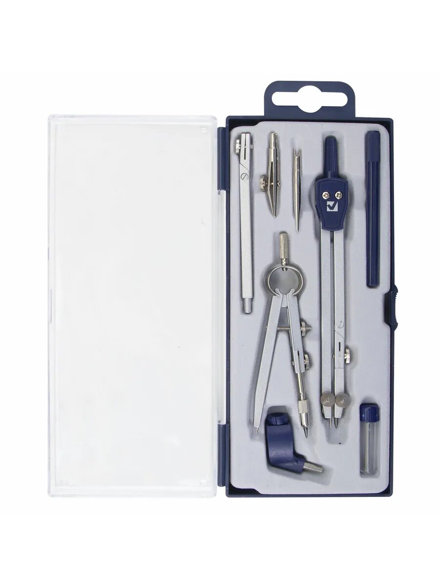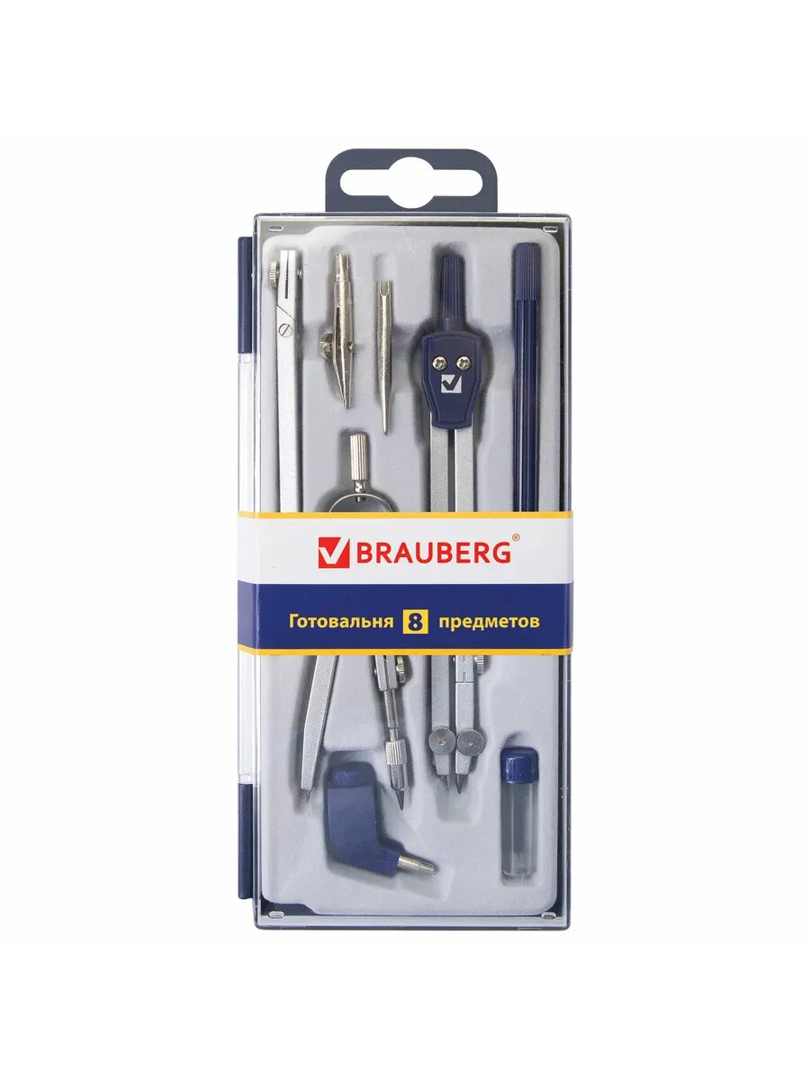 Готовальня с циркулем школьная Brauberg Student Oxford, 8 предметов: наполнение-1, 210350