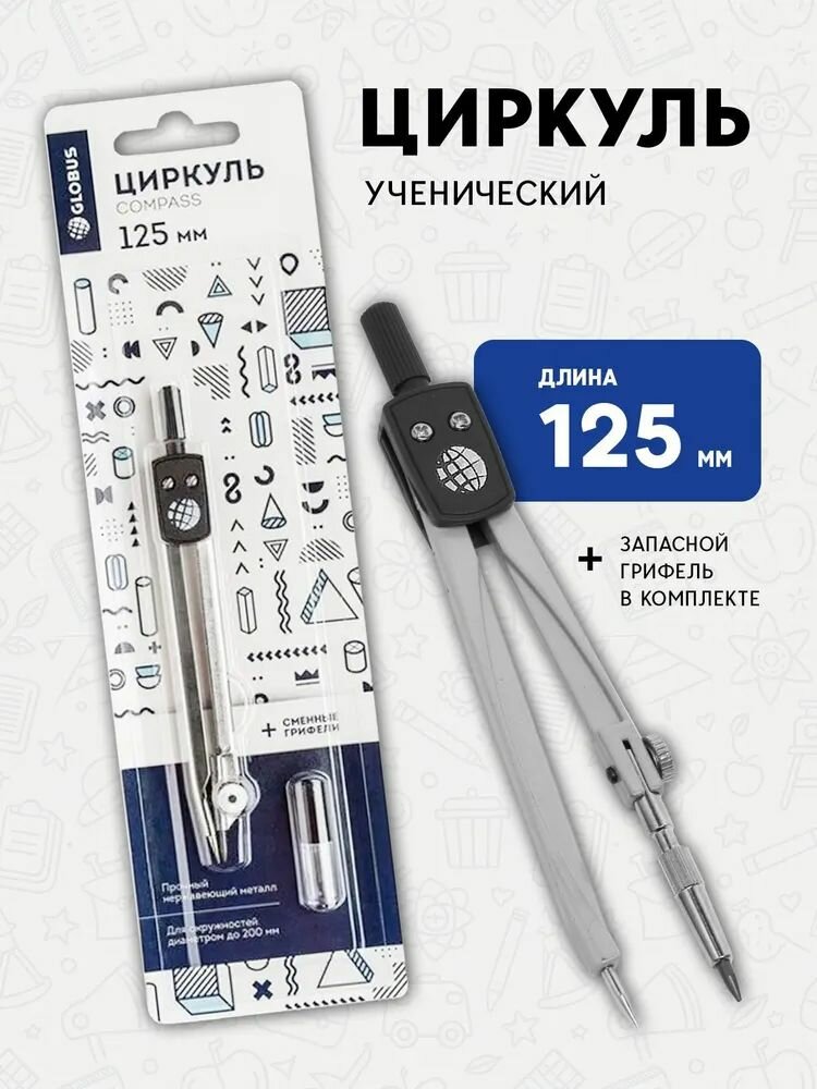 Циркуль 125 мм. Globus "Junior" металлический, с грифелями, в блистере интересное: