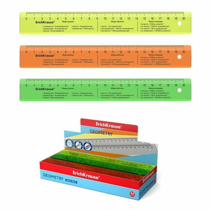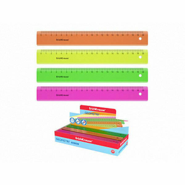 Линейка пластиковая ErichKrause® Neon, 20см, ассорти из 4 цветов, 52998 интересное: