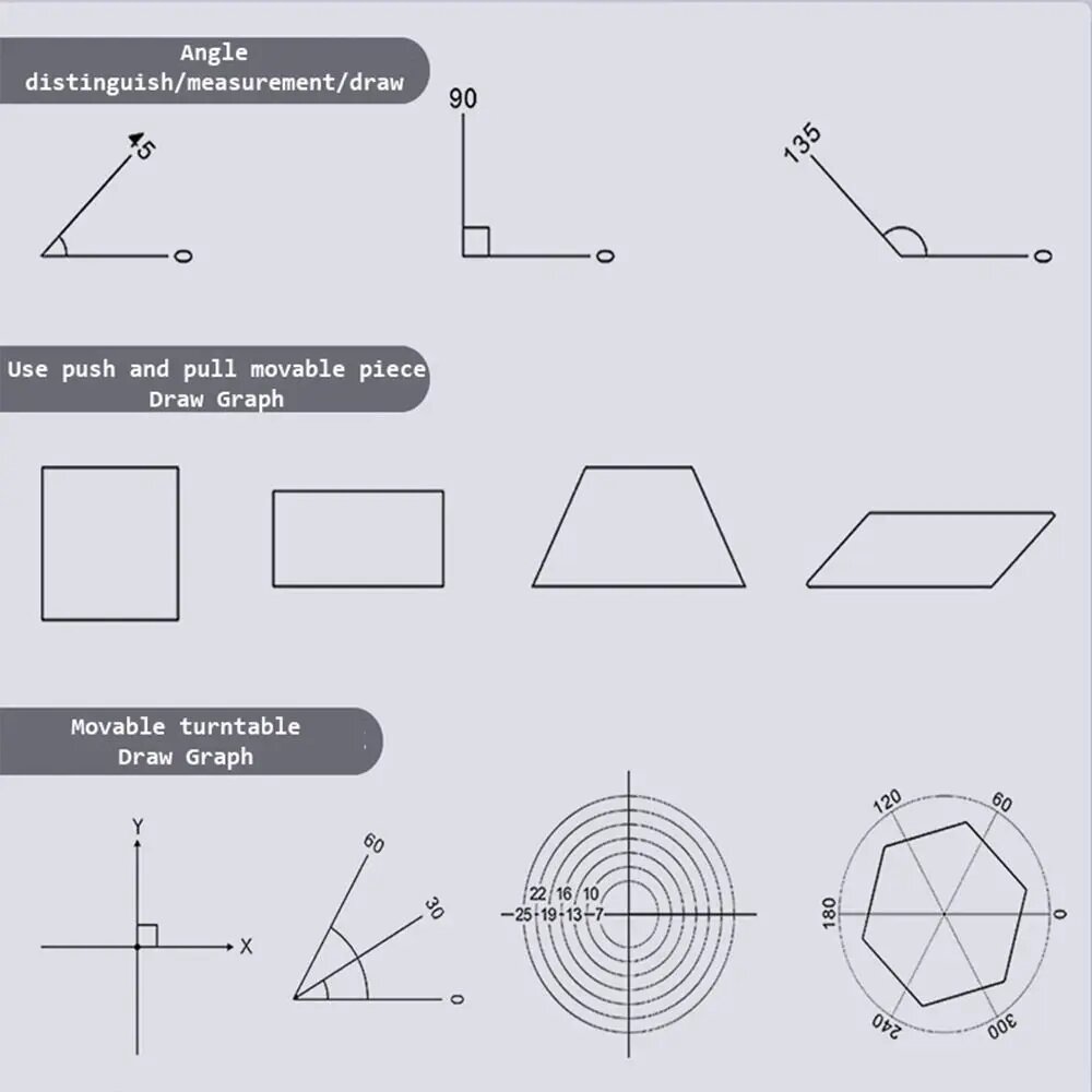 Купить Пластиковая многофункциональная геометрическая линейка, A-06