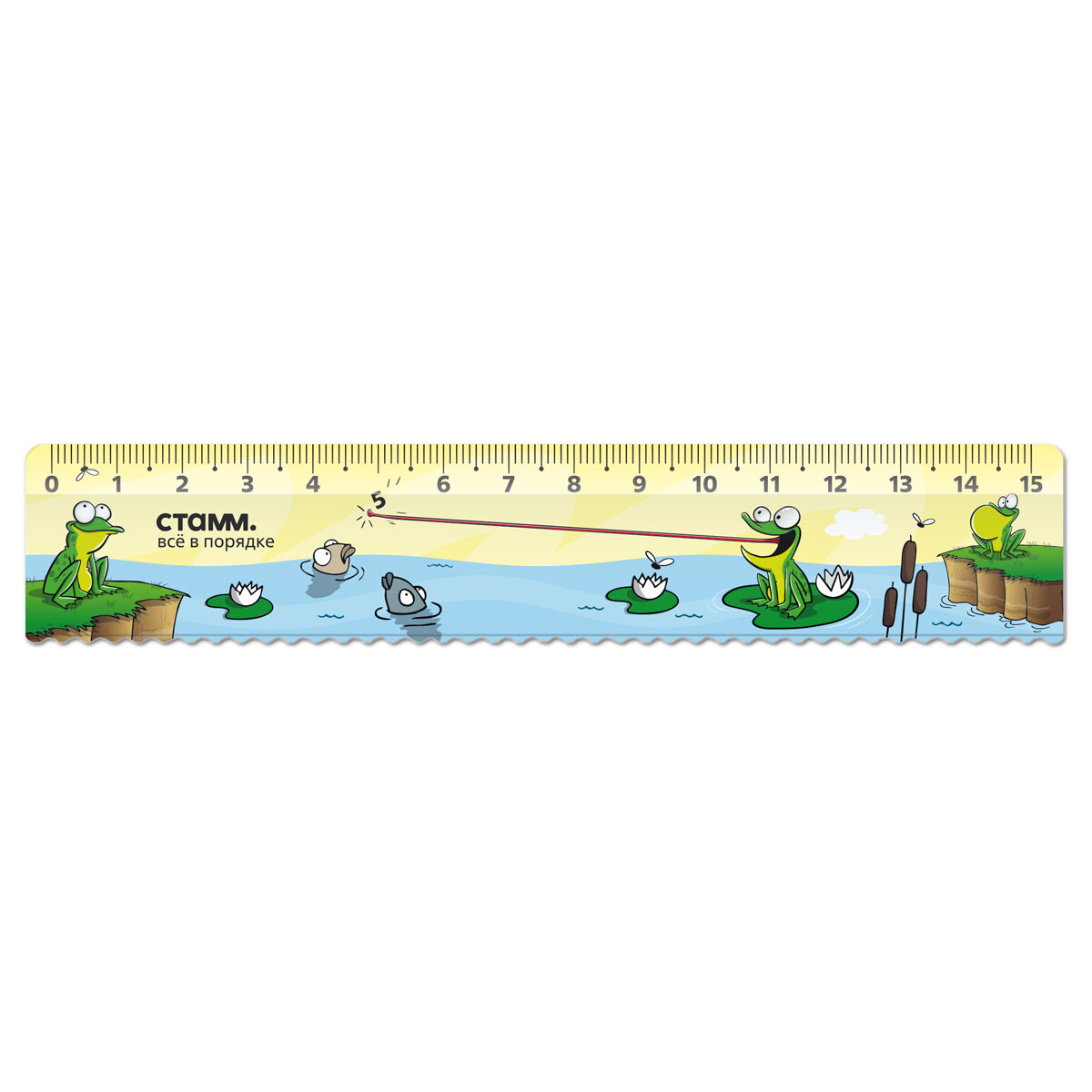 Купить Линейка 15см СТАММ "Лягушки", пластиковая, с волнистым краем, европодвес