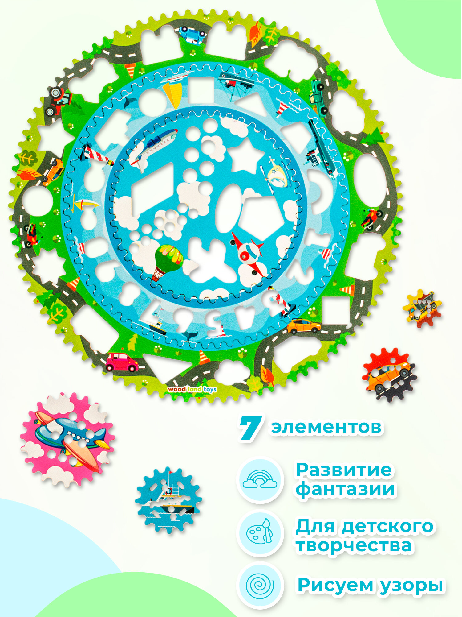Купить Развивающая игра Спирограф для рисования "Транспорт", набор деревянных трафаретов с цифрами