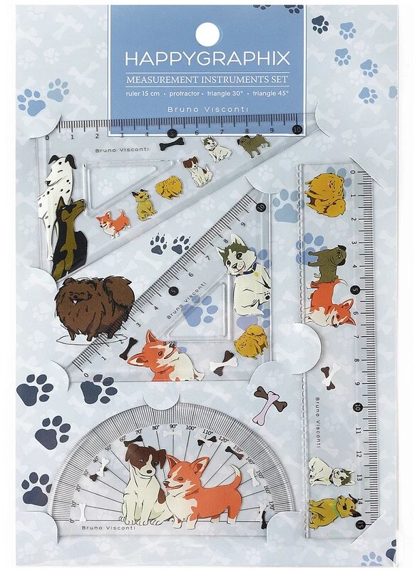 Купить Набор измерительных инструментов HappyGraphix "Щеночки", транспортир, линейка, треугольники