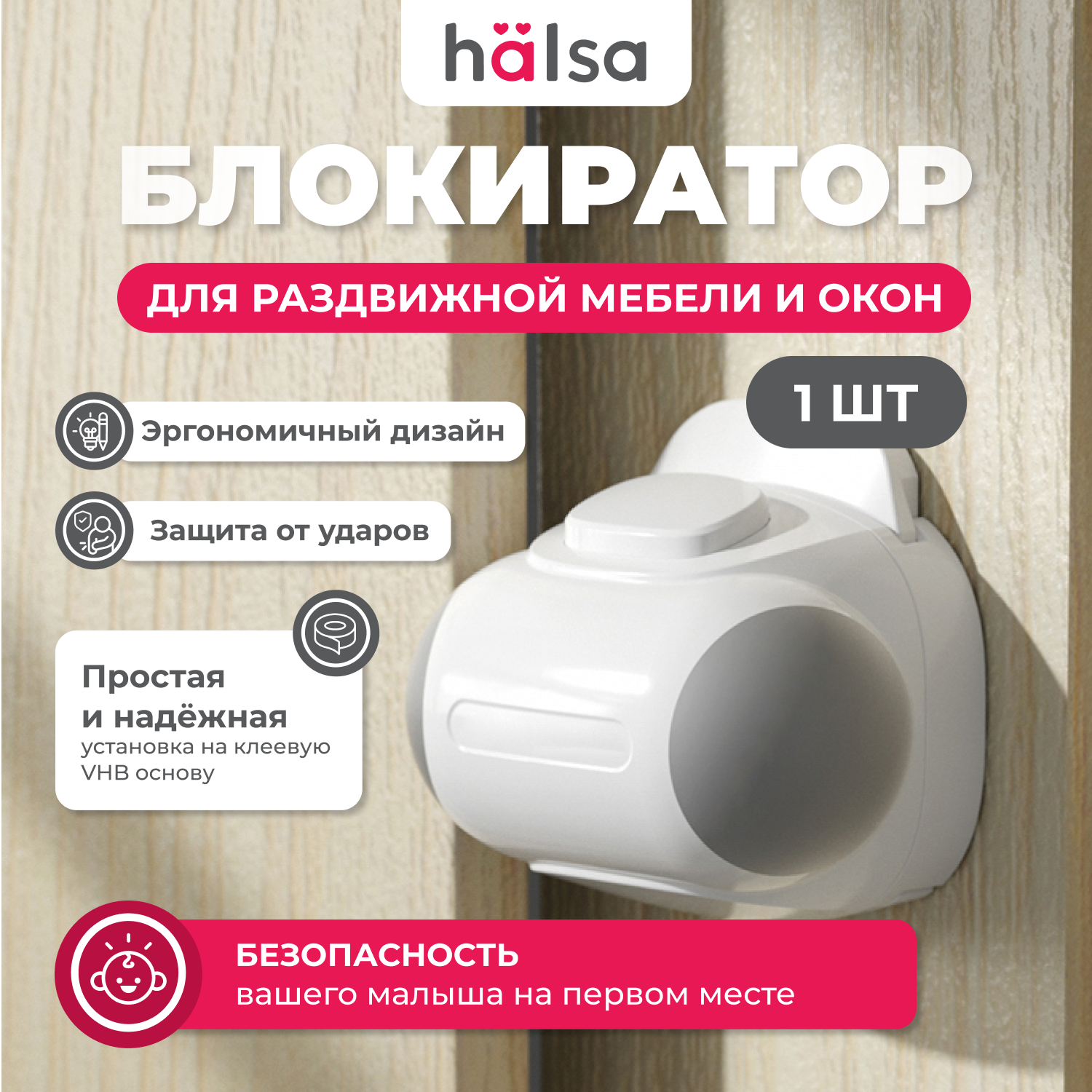 Блокиратор дверной ручки HALSA, поворотного типа, клейкая лента c прорезиненным корпусом