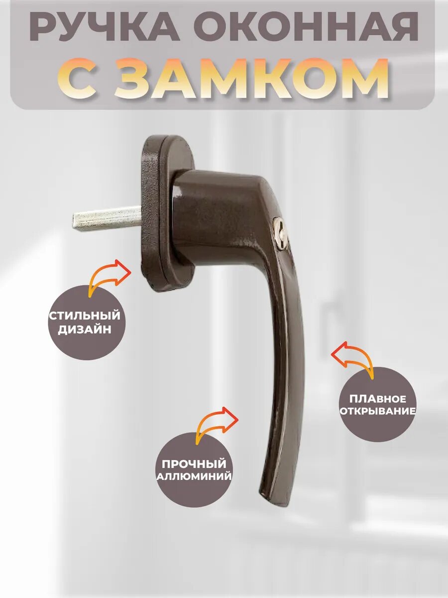 Ручка оконная с замком и ключом коричневая интересное: