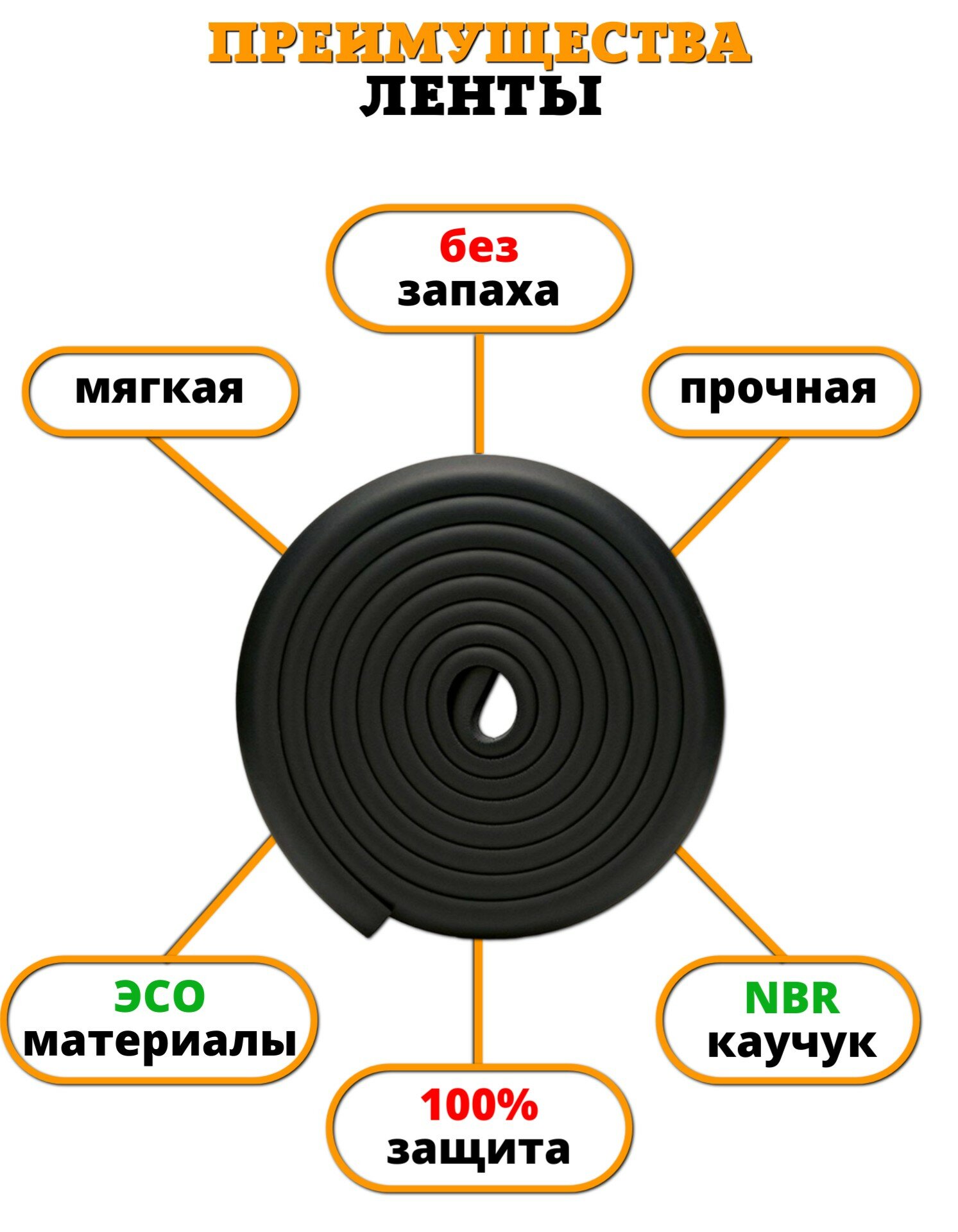 Защитная лента на углы Beideli 8 метров (2шт. по 4 метра), черный. Мягкая накладка на края мебели для детей от ударов интересное: