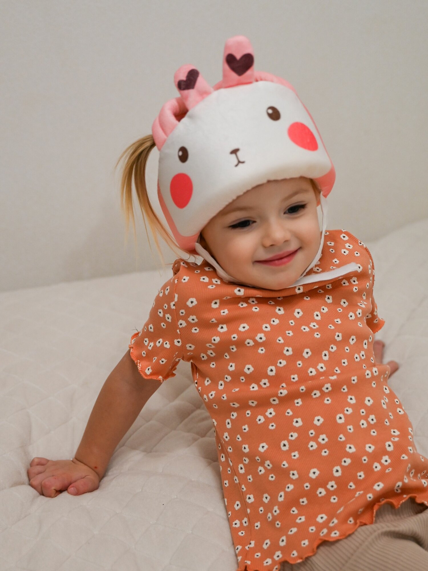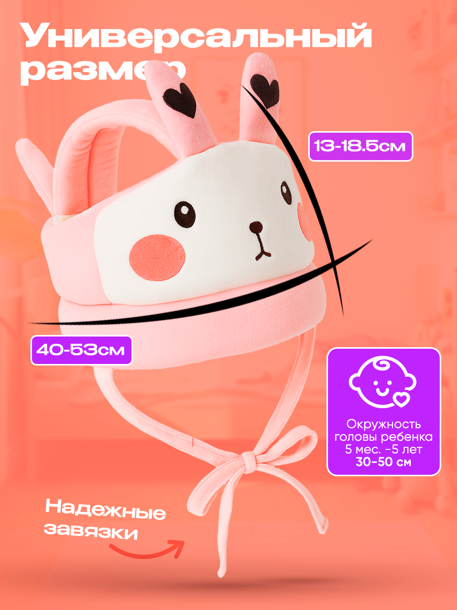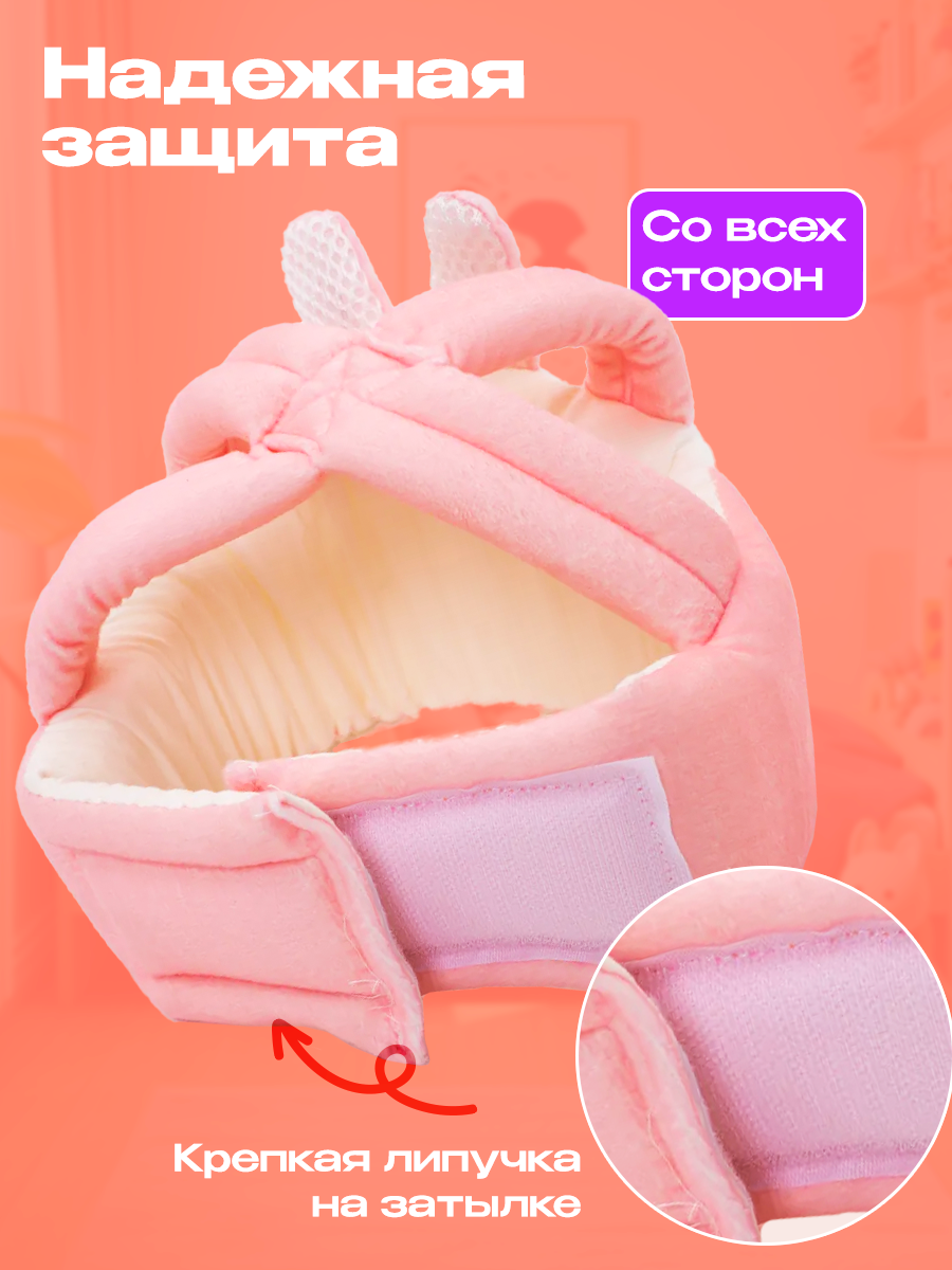 Шапка-шлем "Зайка", противоударный, розовый, текстиль, 3 мес.+ интересное: