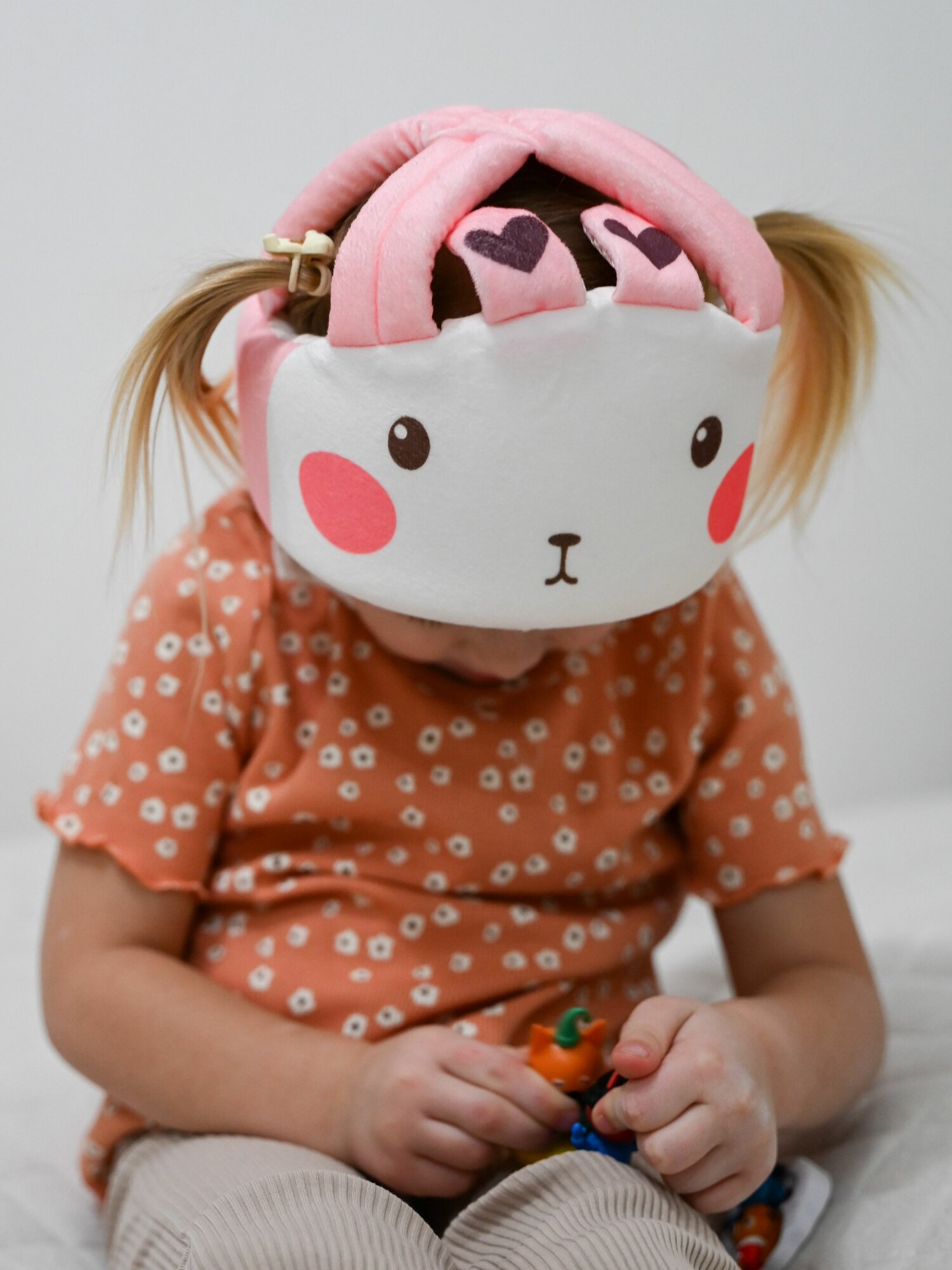 Купить Шапка-шлем "Зайка", противоударный, розовый, текстиль, 3 мес.+