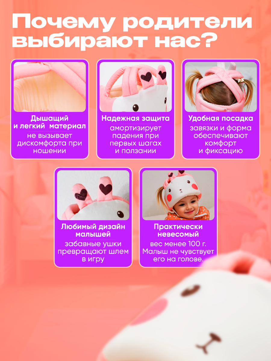 Ниже Вы можете прочитать отзывы на Шапка-шлем "Зайка", противоударный, розовый, текстиль, 3 мес.+, ознакомится с подробными характеристиками, посмотреть интересные обзоры и фотографии на Шапка-шлем "Зайка", противоударный, розовый, текстиль, 3 мес.+.