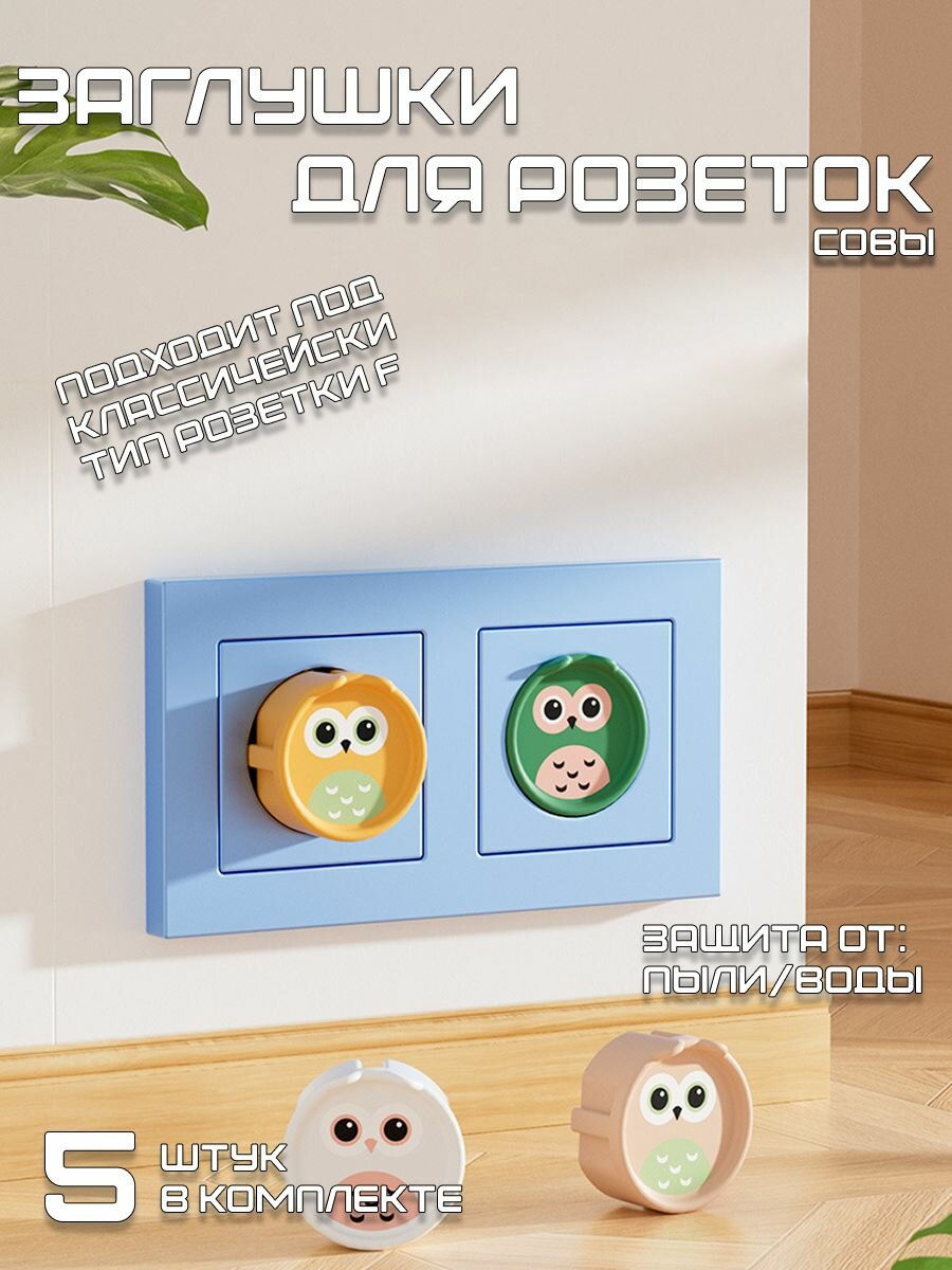 СохранитьЗаглушки для розеток "Совы" 5 штук цвет Зеленый интересное: