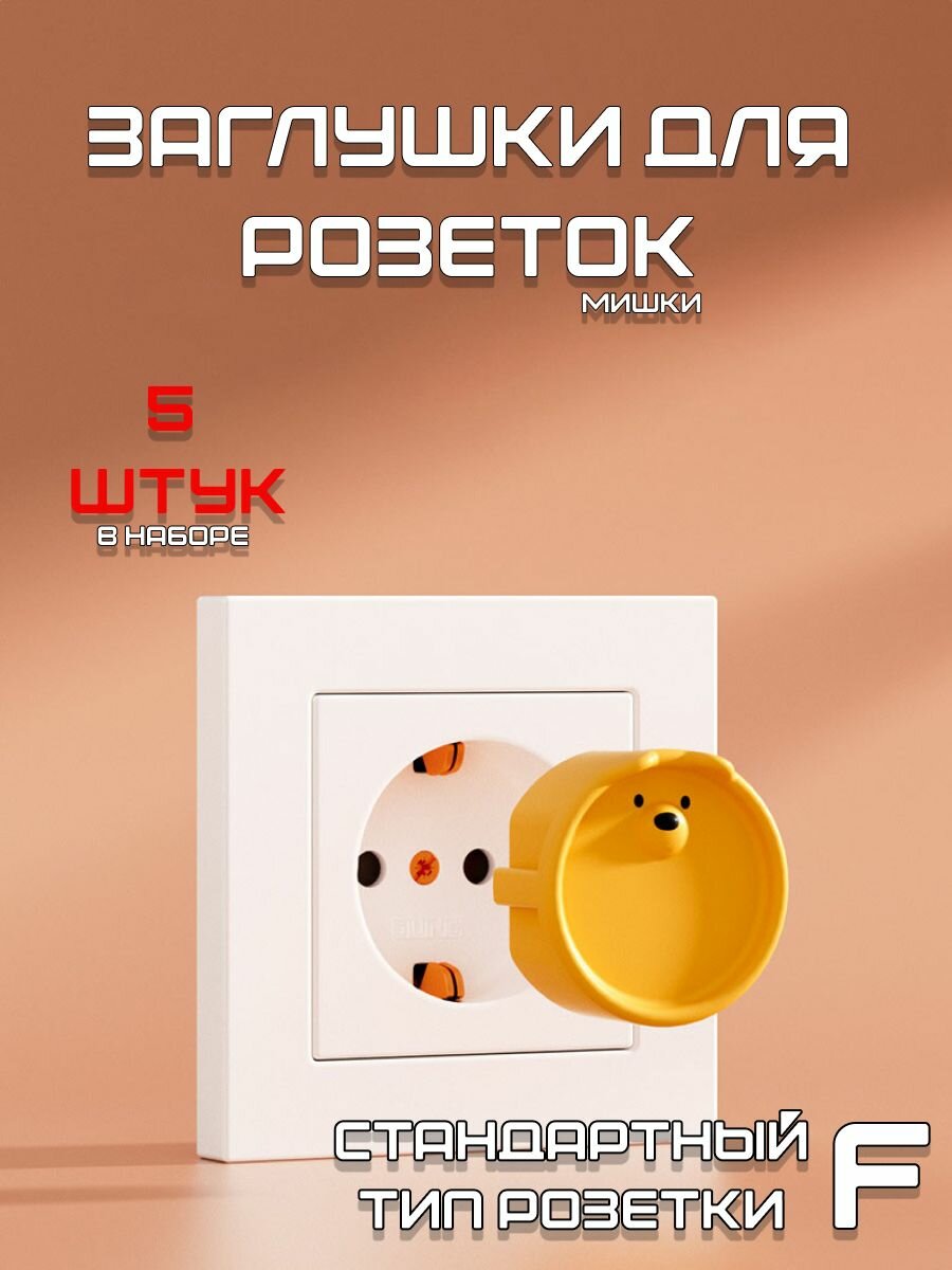 Купить Заглушка для розеток в виде Мишки 5 штук (Жёлтые)