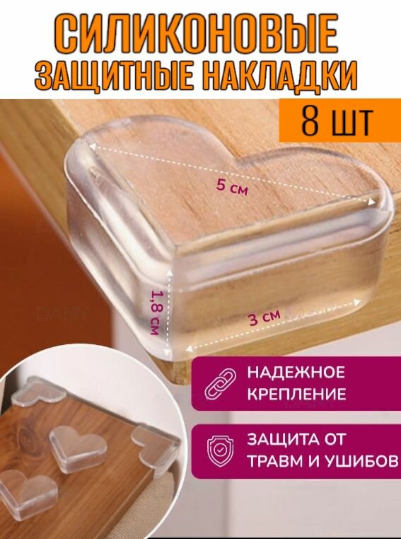 8 шт! Защитные накладки на углы "Сердце"силиконовые / протекторы на углы интересное: