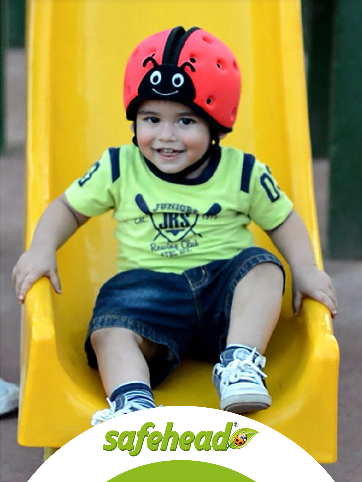 Мягкая шапка-шлем для защиты головы SafeheadBABY. Божья коровка. Цвет: зелёный