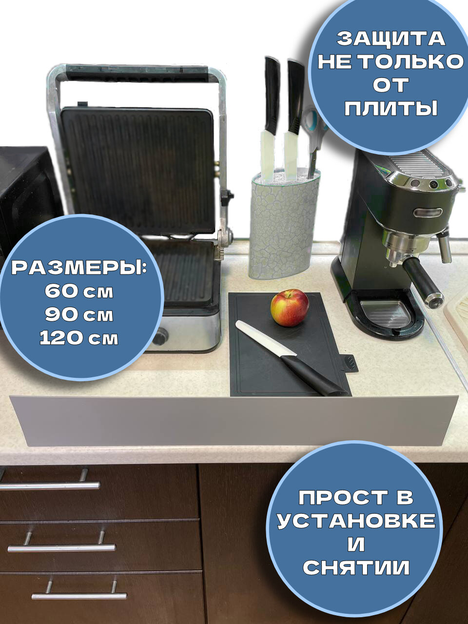 Барьер (панель, перегородка, экран) защитный для кухонной плиты и столешницы (60 см), серый интересное: