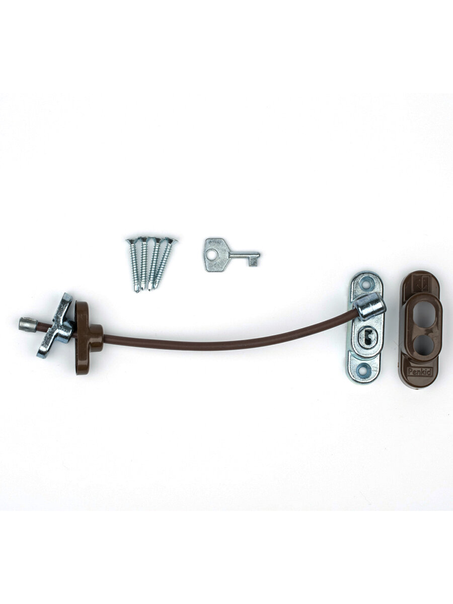 Лот 3 шт: Оконный замок безопасности с тросом Penkid, коричневый