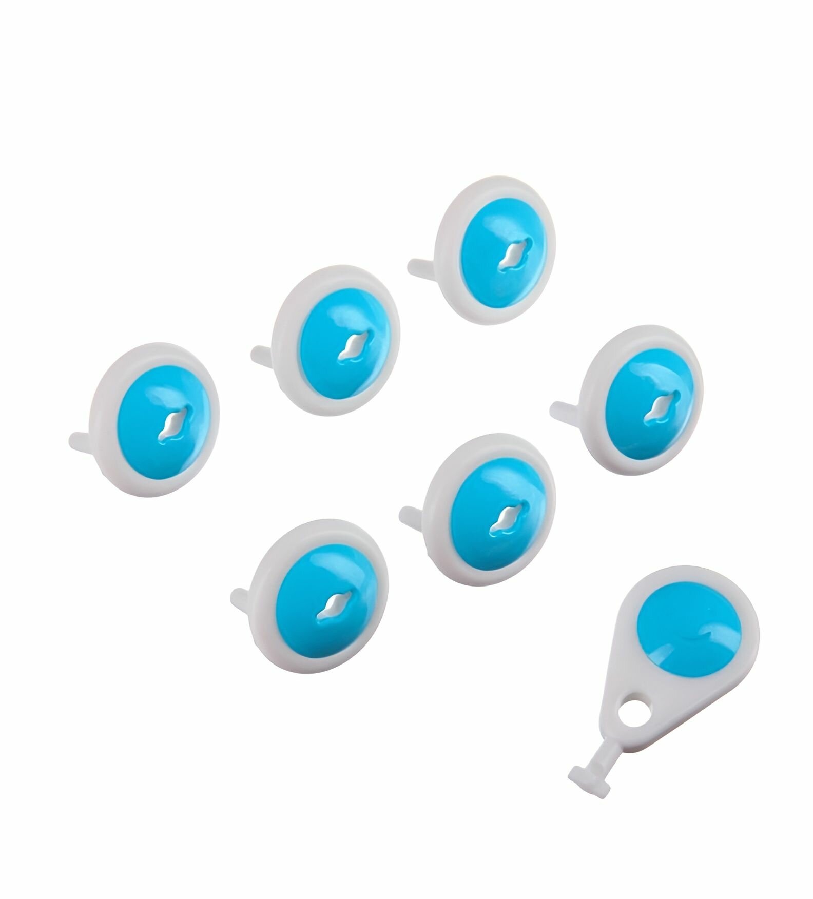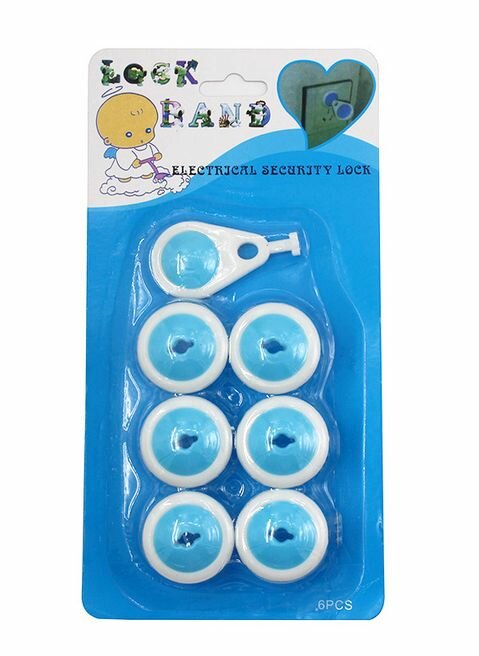 Купить Заглушка для розетки от детей, с ключом, набор 6 штук, белый, голубой