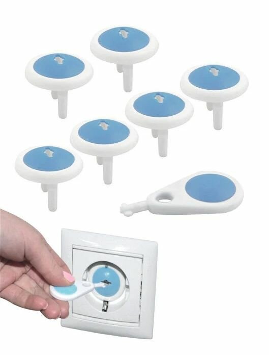 Заглушка для розетки от детей, с ключом, набор 6 штук, белый, голубой интересное: