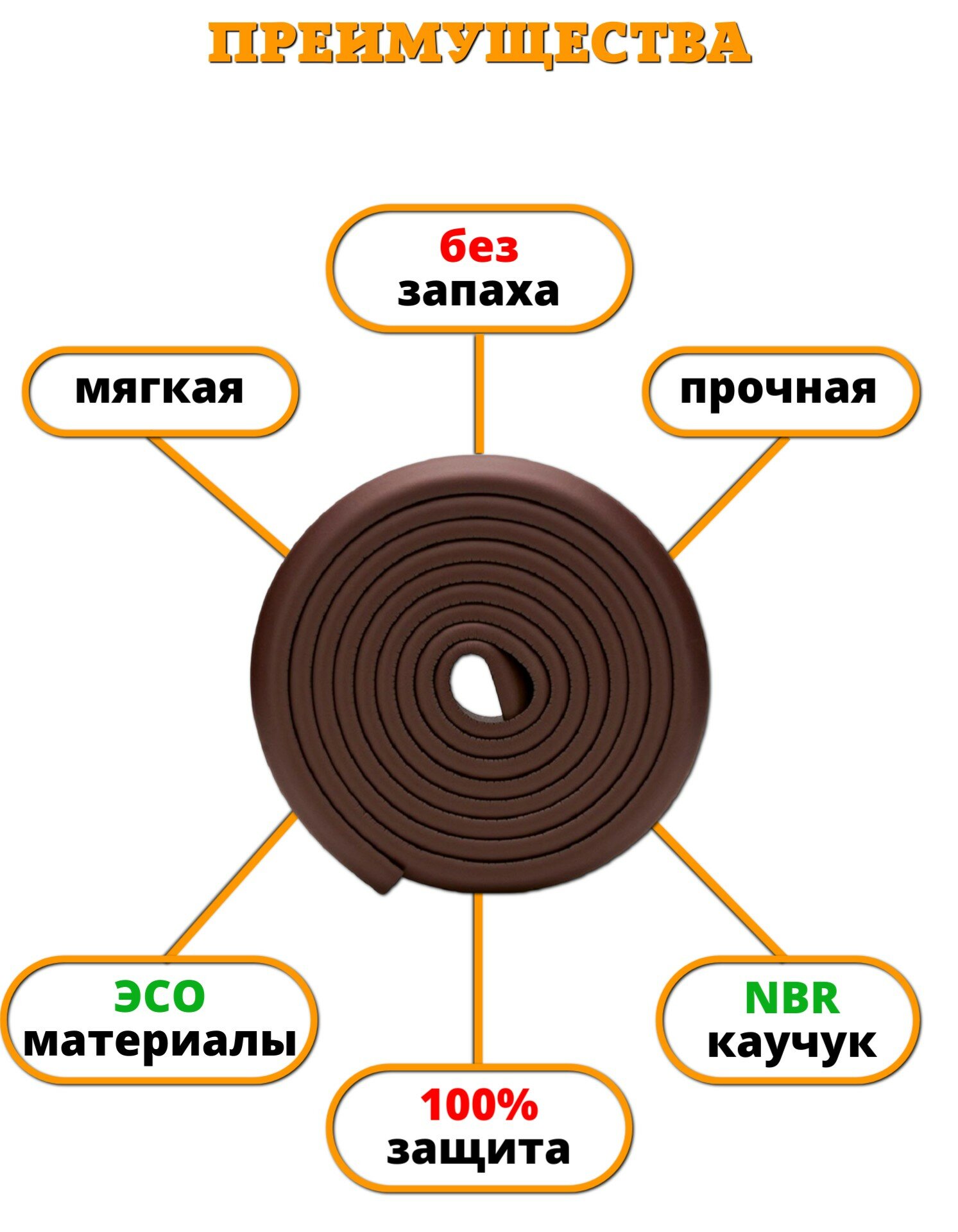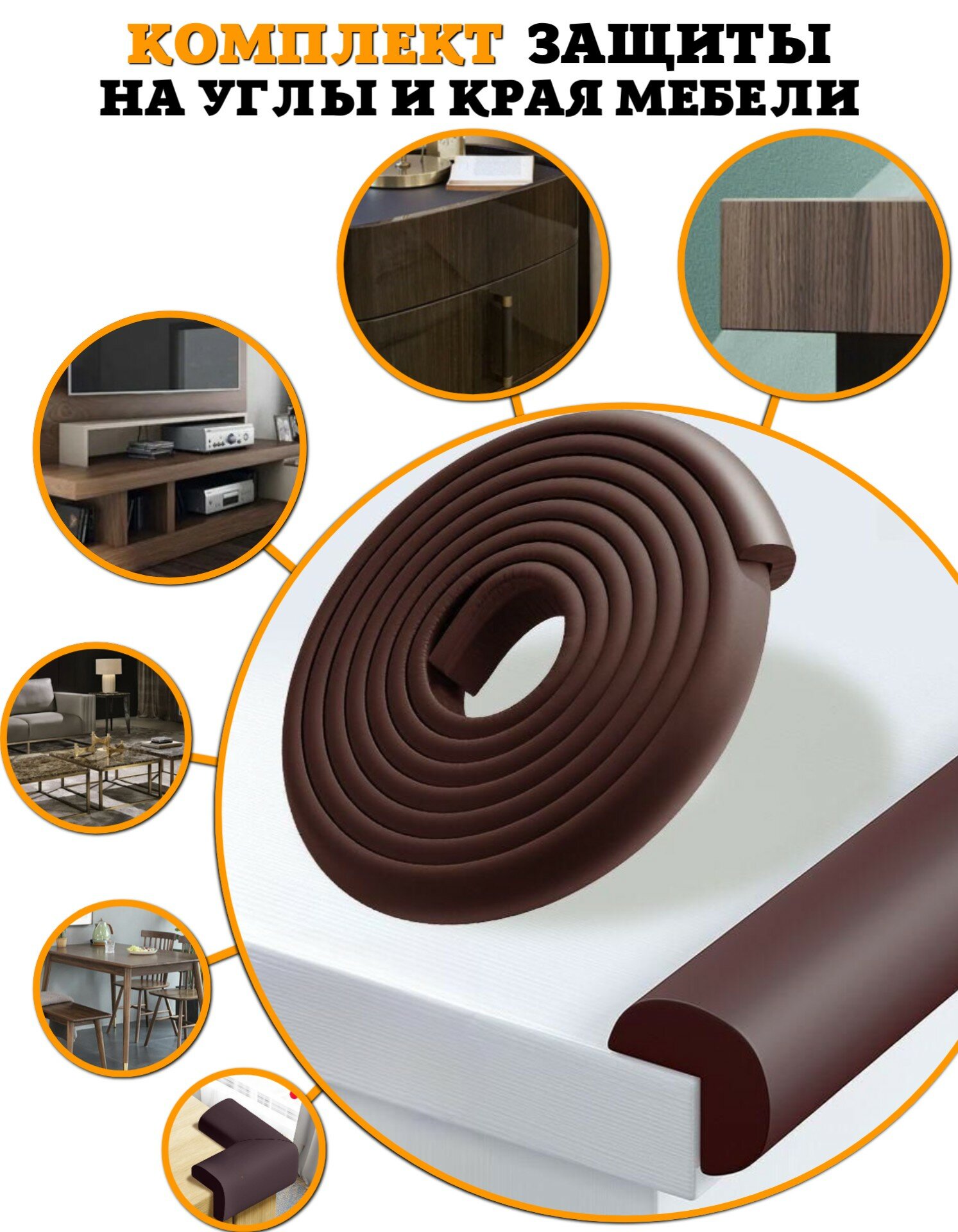 Защитная лента на края мебели Beideli 4 метра и накладки на углы 4шт, коричневый. Мягкая защита для детей от ударов интересное: