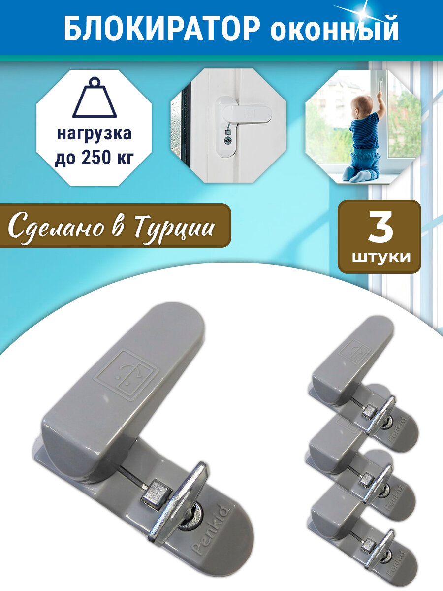 Лот 3 шт: Ограничитель окна поворотный Пенкид Саш джаммер серый интересное: