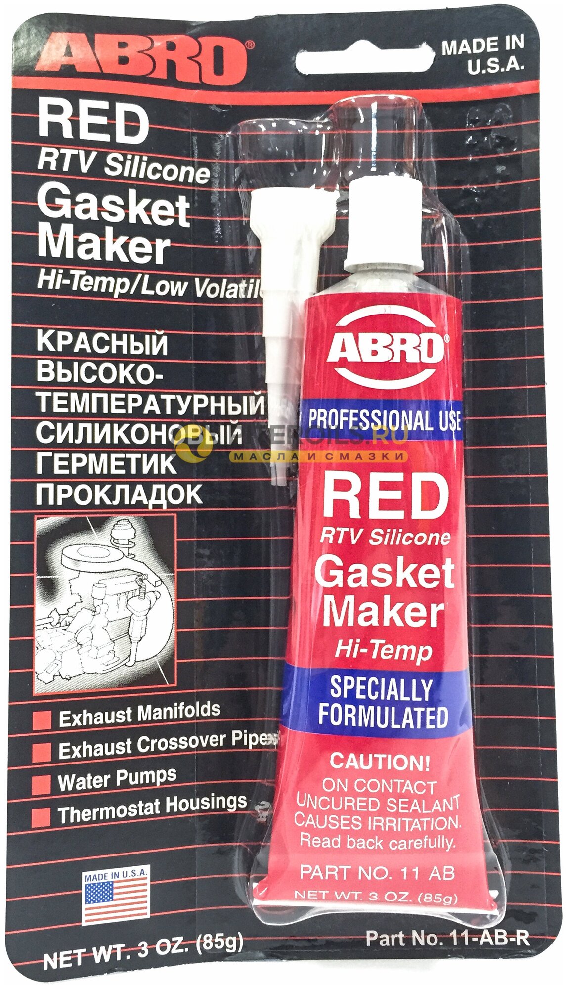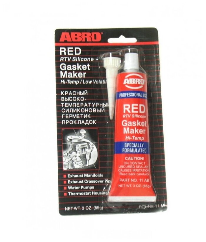 ABRO 11-AB Герметик 85гр - прокладочный красный силиконов. на уксусной основе для клапанных крышек, масл. насосов, водяных помп, крышек КПП, дифференциалов и др., до 343С