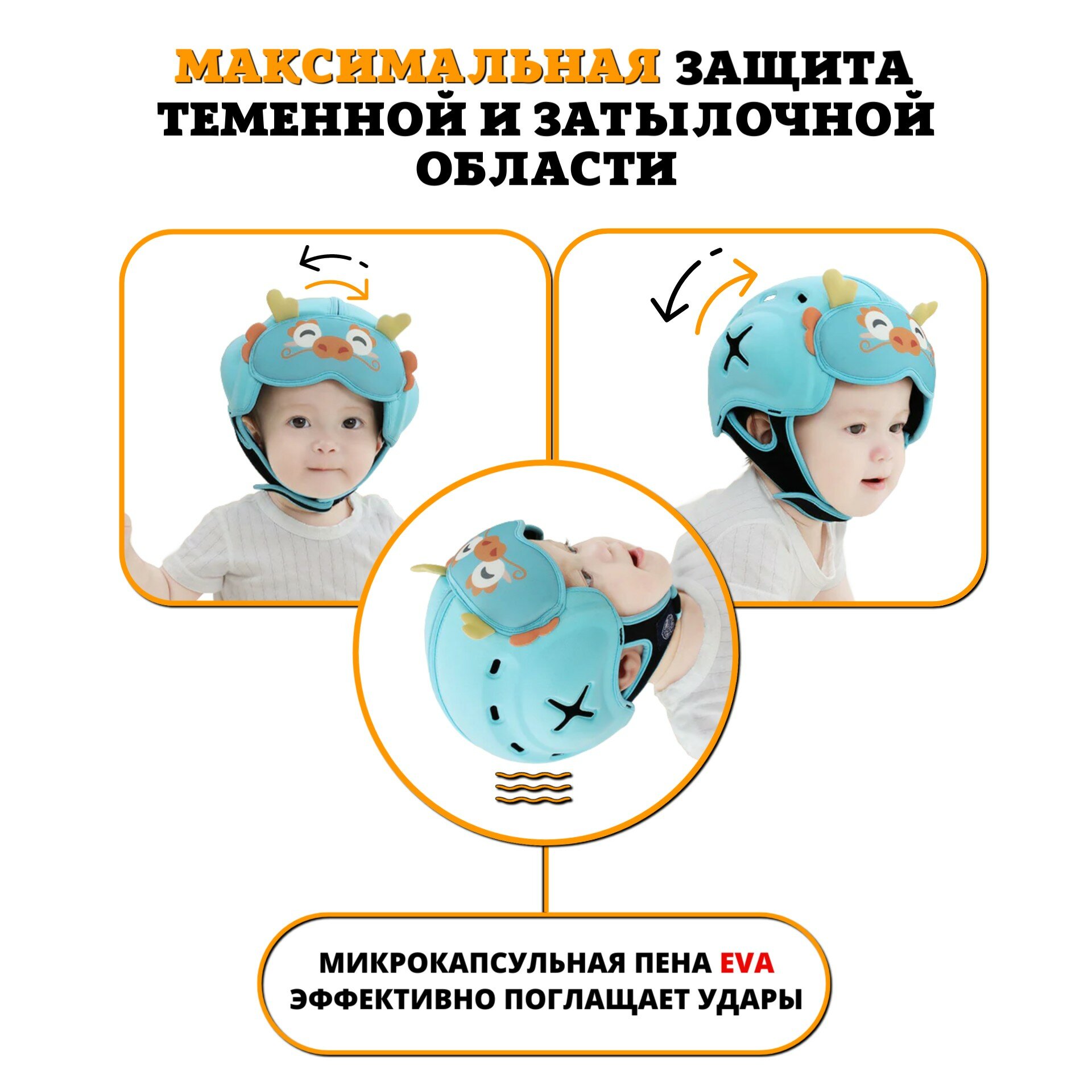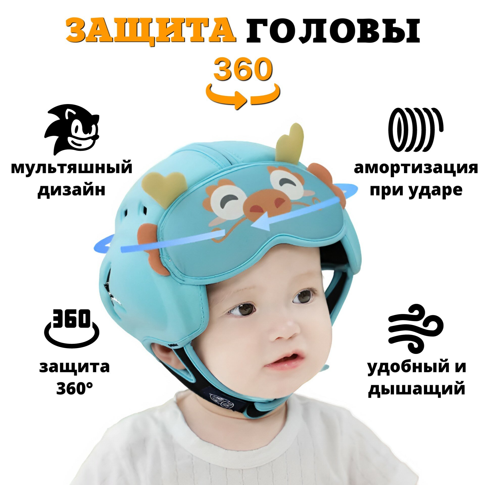 Противоударная детская шапка-шлем для безопасности малыша